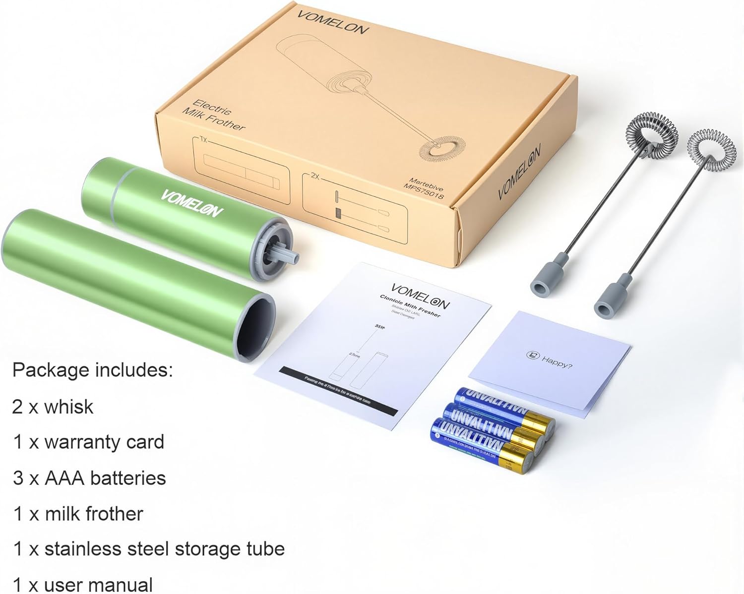 - MAKE RICH, CREAMY FROTH IN SECONDS: Elevate your coffee experience with the Vomelon Milk Frother. This handheld frother creates professional-quality froth for lattes, cappuccinos, macchiatos, and hot chocolates. Enjoy the luxury of creamy foam at home without the need to visit a coffee shop. Take control of your latte and customize it to perfection with our electric milk frother.