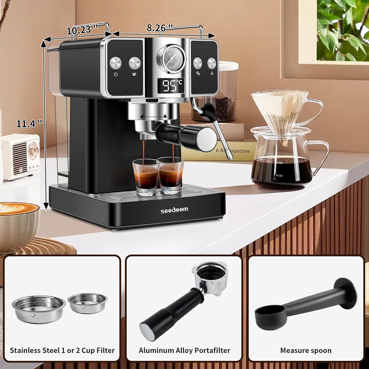 SEEDEEM Espresso Machine,20 Bar Espresso Maker with Milk Frother,Stainless Steel Latte and Cappuccino Machine with 1.8L(60 Fl Oz) Removable Water Tank