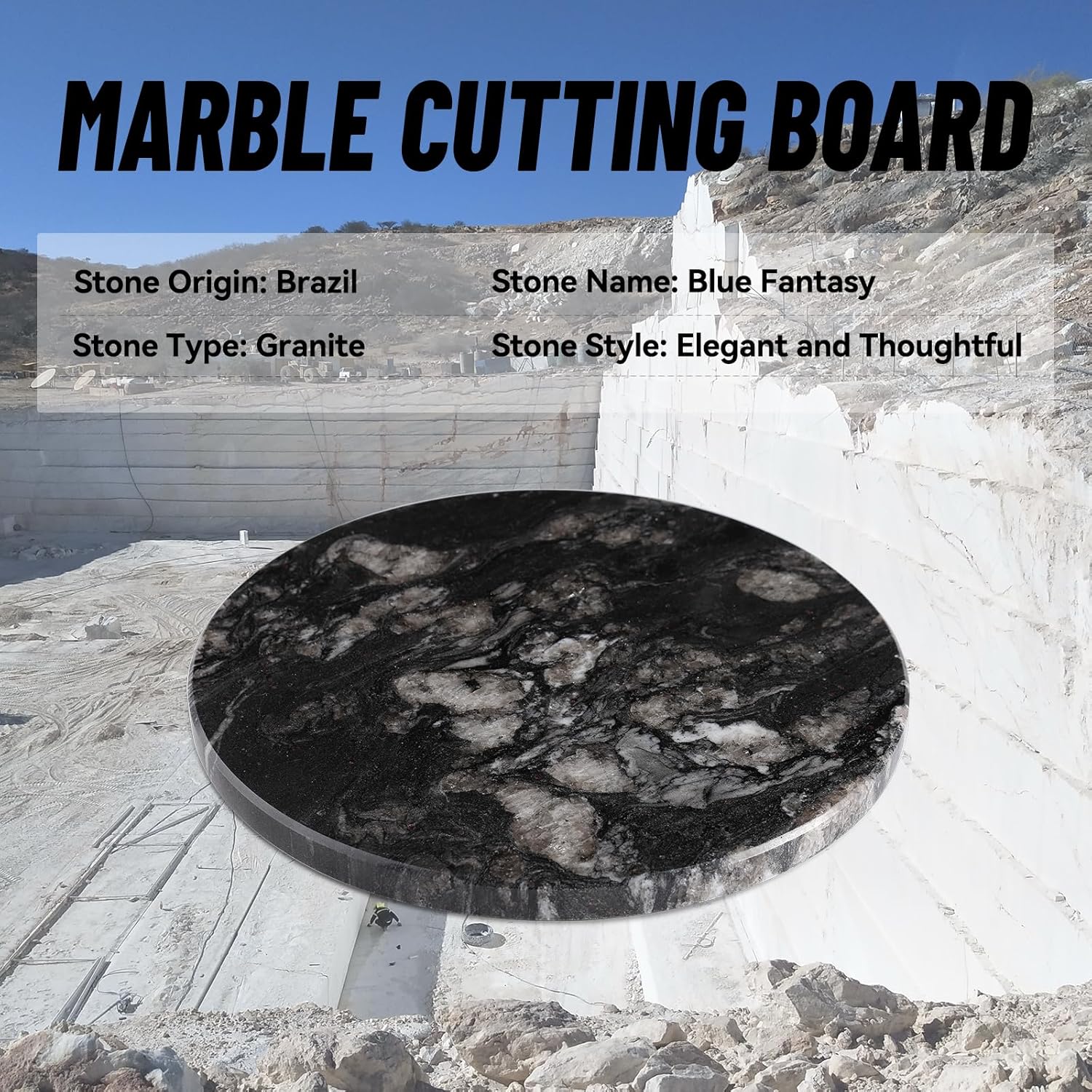 Koville Brazilian Natural Marble Cutting Board for Kitchen, 11" Round Hand Crafted Marble Slab for Cheese, Charcuterie, Pastry Board - Wedding Gift, House Warming Gift(Blue Fantasy)
