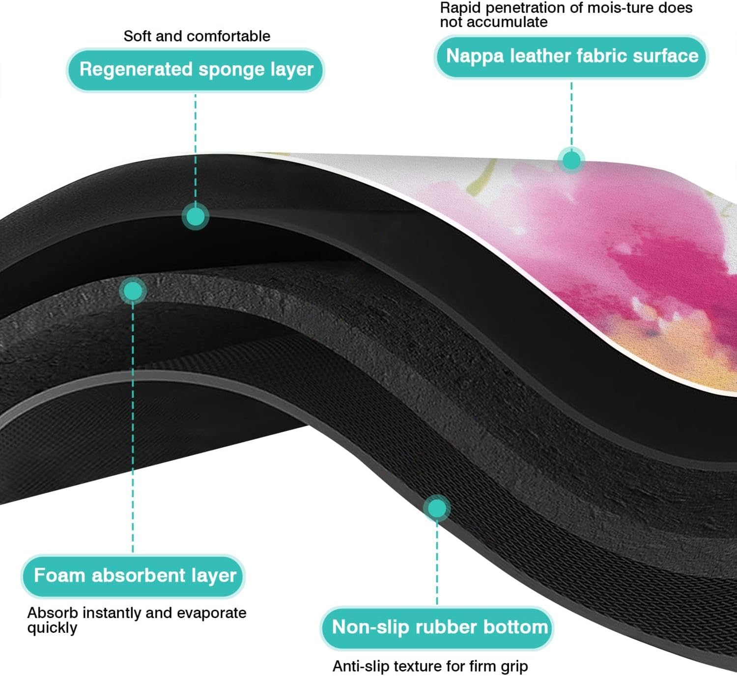 Dish Drying Mat, 24x18in, Watercolor Flower, Nylon, Diatomite, Rubber Backed, Absorbent, Quick Dry, Non-Slip, Wide Use