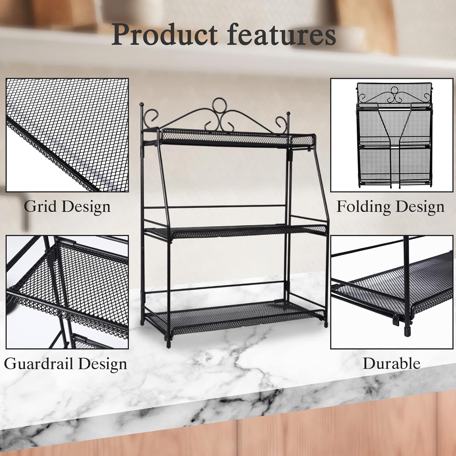- 【Durable and Stable】Spice rack is made of high-quality iron, and the black coating on the surface makes it waterproof, oil-proof and rust-proof. The non-slip design and sturdy frame at the bottom of the spice rack ensure good stability and stay stable at all times