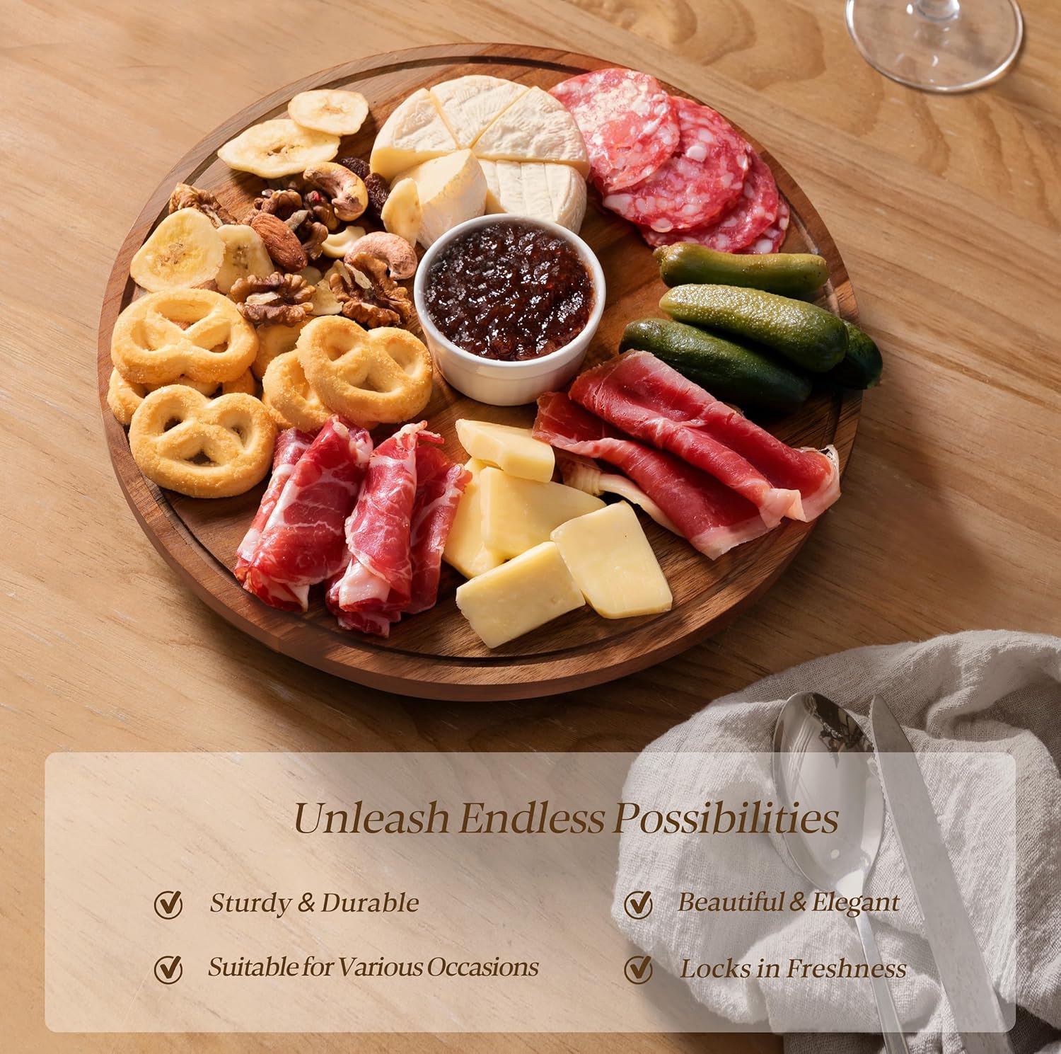 - 360° Rotating Cake Stand With Lid: HBlife cake plate is designed with a high quality acrylic dome with a 360° acacia wood rotating base, which makes it easy to cut the cake and allows you to easily display the cake from every angle, making it the center of attention at family gatherings. The plate has grooves to keep the lid centered while blocking out mosquitoes and dust, and is also insulated to ensure fresh and hygienic food