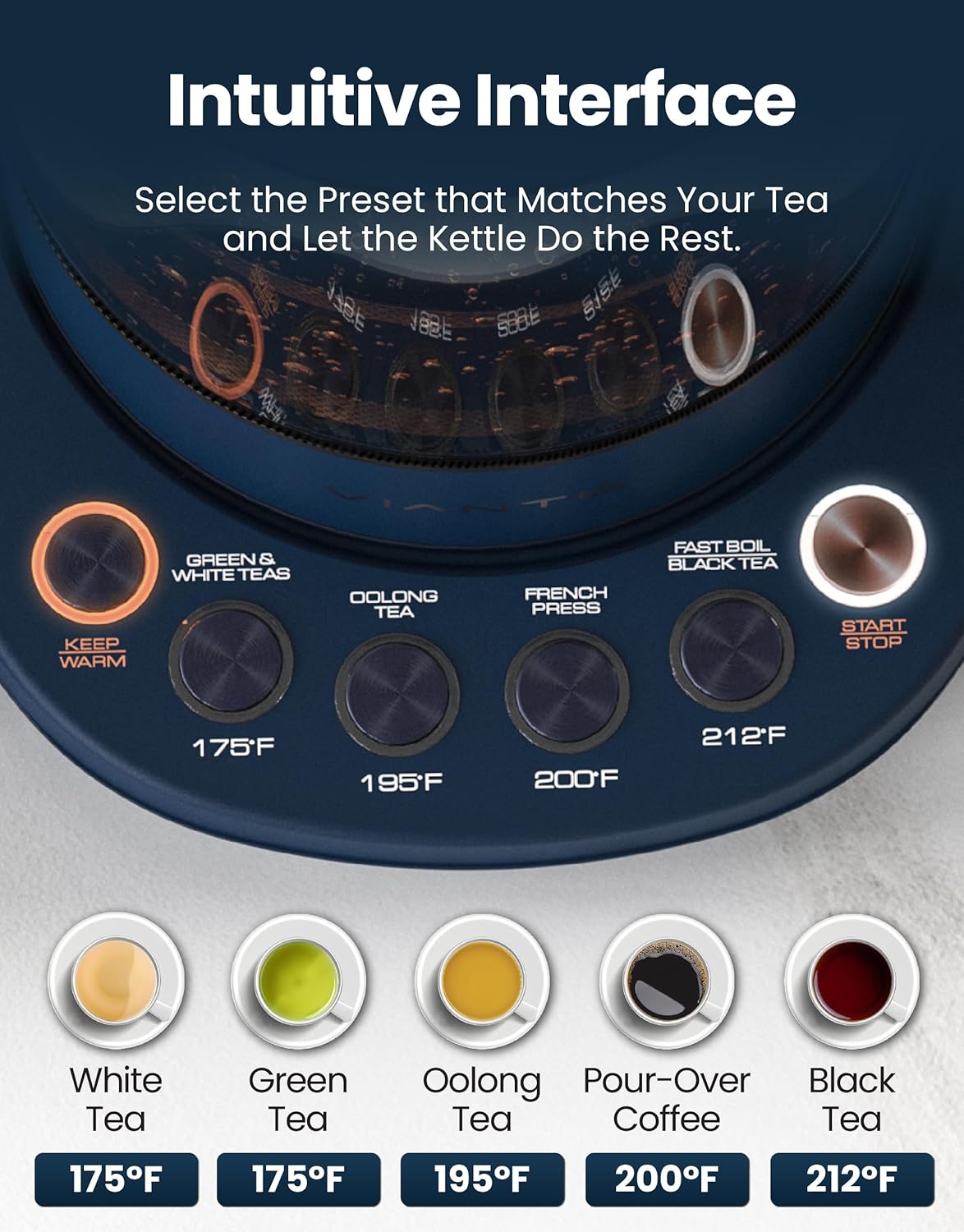 - The Viante Difference – Count on us to deliver the experience of world-class flavor and service. Your temperature control electric kettle is backed by our commitment to your complete satisfaction.