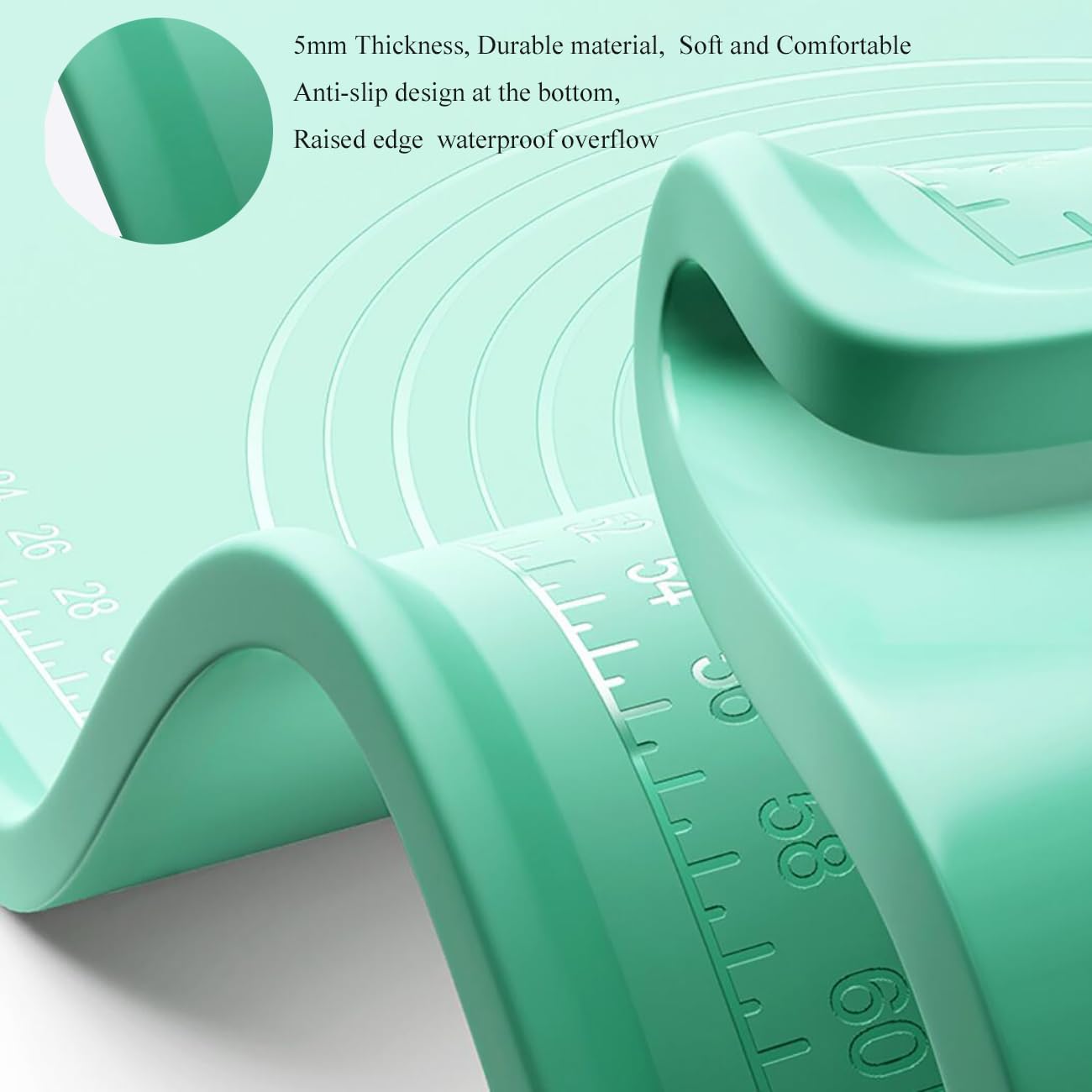 - RAISED EDGE AND DOUBLE THICK PAT:Unique Raised Edge Design to Prevent Water Spillage when Kneading Dough and Keep the Table Clean and Tidy. This Heat Resistant Mat Can be Used for Microwave, Oven, Dishwasher Safe, in Temperatures Between -40°F to 446°F.