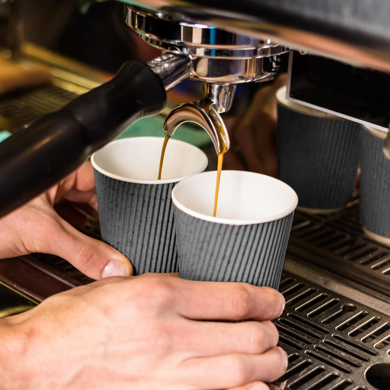 Yaomiao 200 Pcs 4 oz Disposable Espresso Coffee Cups Ripple Corrugated Paper Insulated Hot Cups for Party Cold Drinks Hot Beverage Tea(Gray)