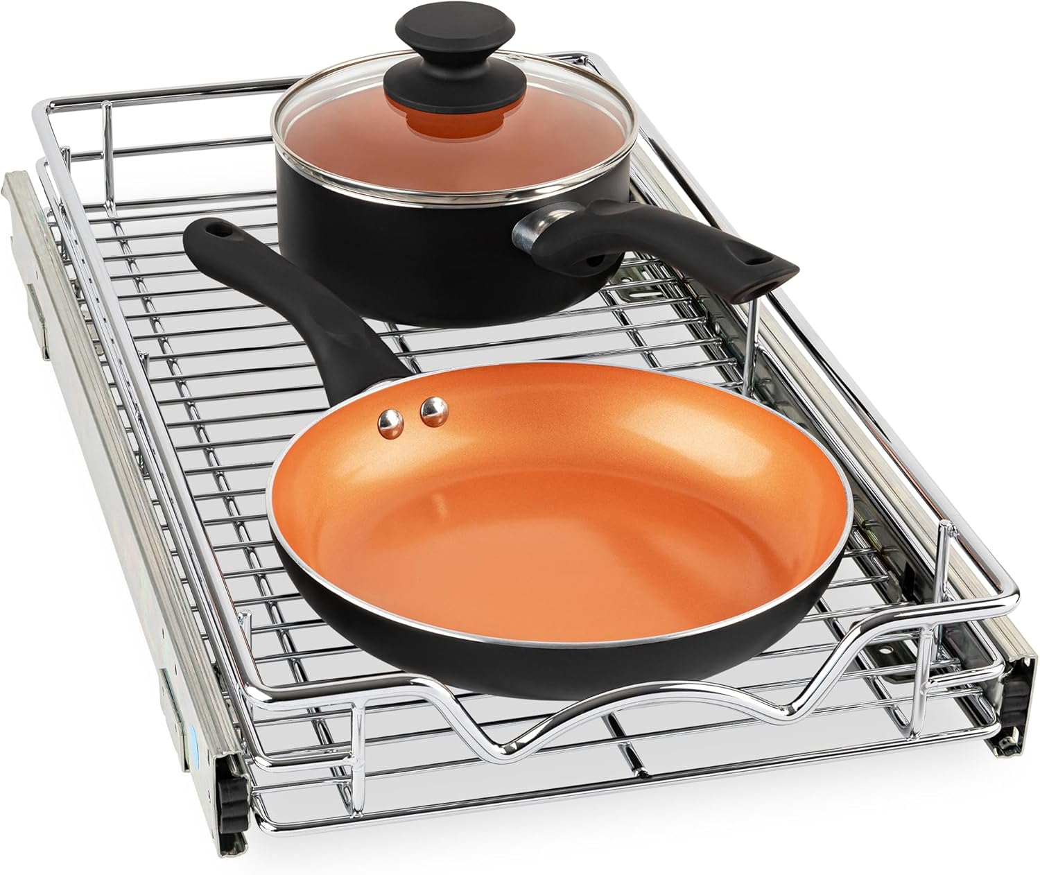 - SMOOTH SLIDE-OUT DRAWER: This kitchen cabinet roll out shelf is manufactured with a pull out system that slides out ultra-smooth. Other than other drawer organizers, our Pull Out Cabinet shelf slides out all the way, providing you with easy access.