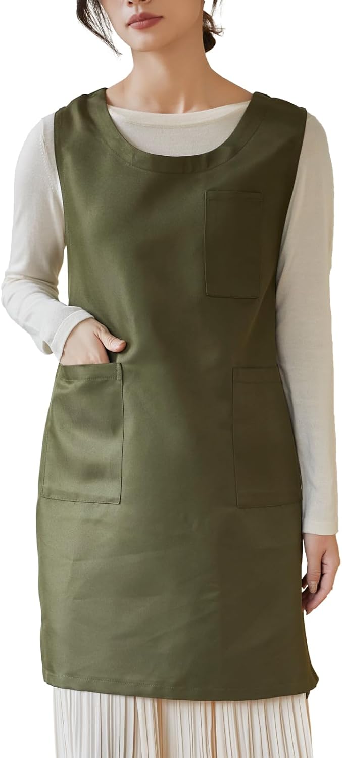 Women Cobbler Apron Japanese Style Aprons with 3 Pockets for Work Chef Kitchen