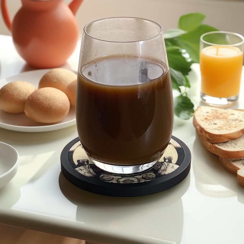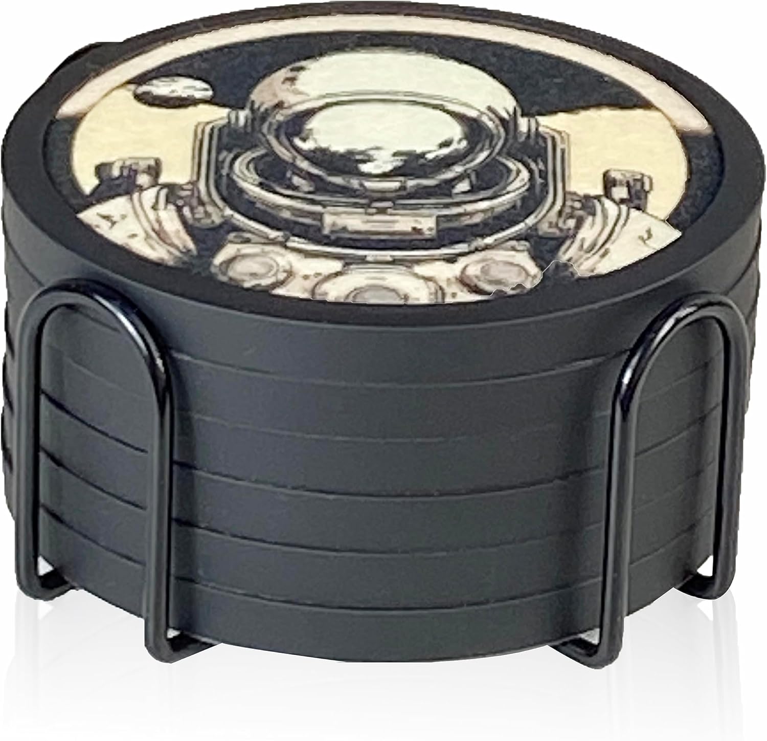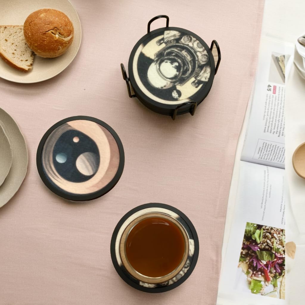 Absorbent Coasters for Drinks with Holder - 6packs, Silicone Coaster with Soft Felt Insert (4.3 inch Coasters with 4.5 inch Holder, Dual-Sided Space -Themed Patterns)