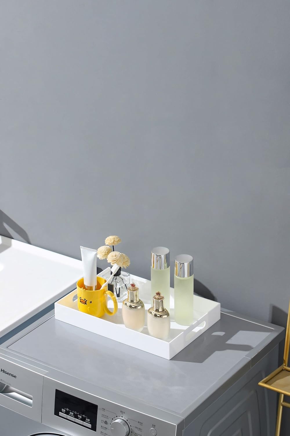 Glossy White Sturdy Acrylic Serving Tray with Handles-12x20Inch-Serving Coffee,Appetizer,Breakfast,Butler-Kitchen Countertop Tray-Makeup Drawer Organizer-Vanity Table,Ottoman Tray-Decorative