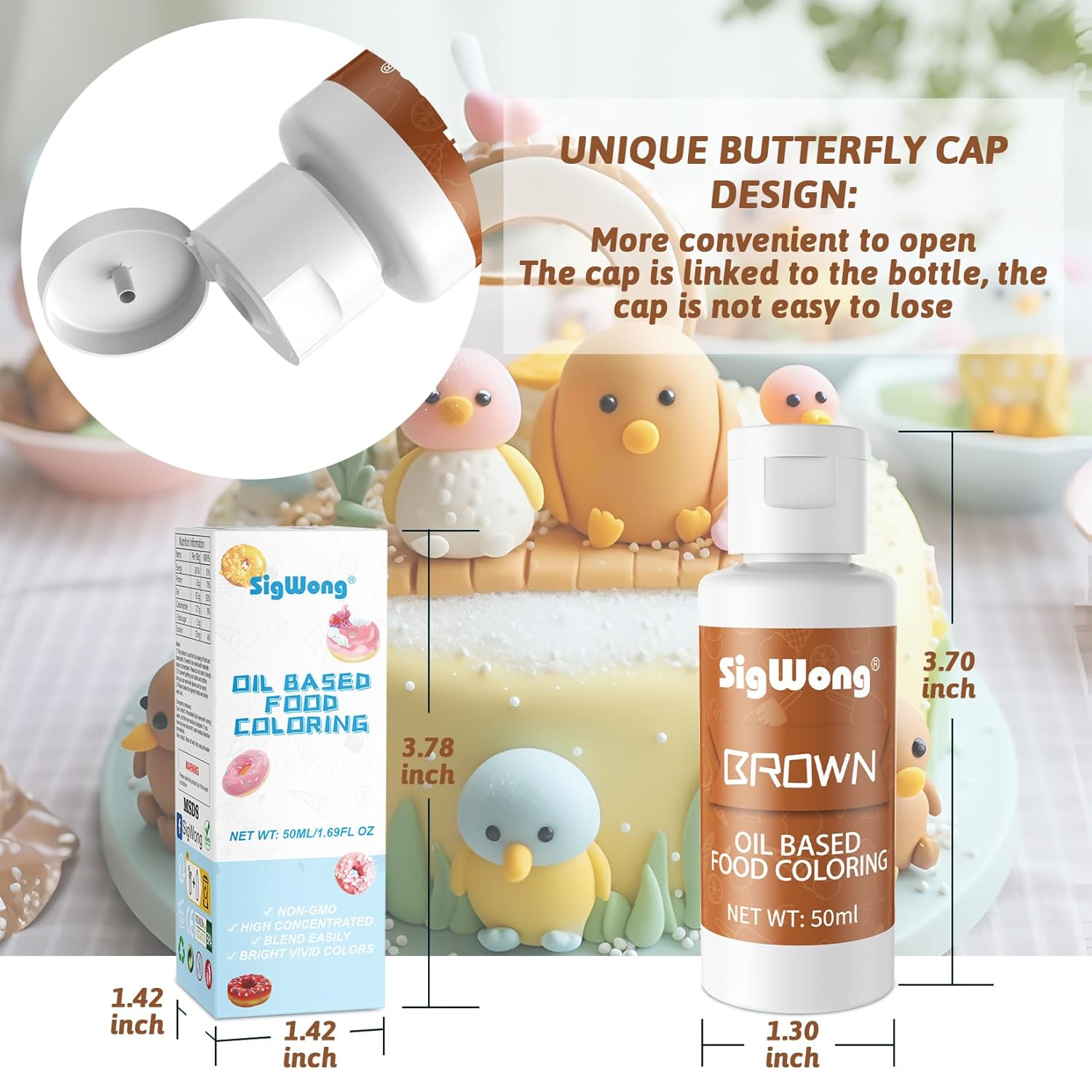 Oil Based Food Coloring for Chocolate - 50ml Brown Upgraded Edible Oil Based Food Dye for Cake Decorating, Baking, Candy Melts, Cookie, Icing Frosting, Fondant, Meringues - 1.69 Fl.Oz Bottles