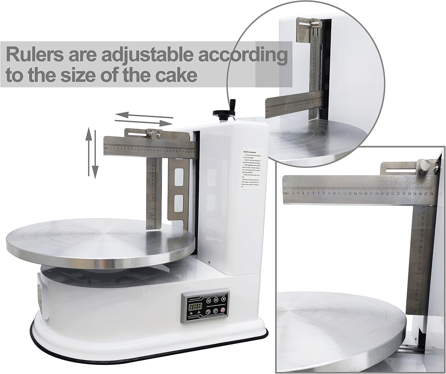 TECHTONGDA Cake Decorating Coating Machine Cream Spreading Automatic Frosting Turntable with Graduated Scraper for 4-16inch Cakes 40-180RPM Rotating Speed White