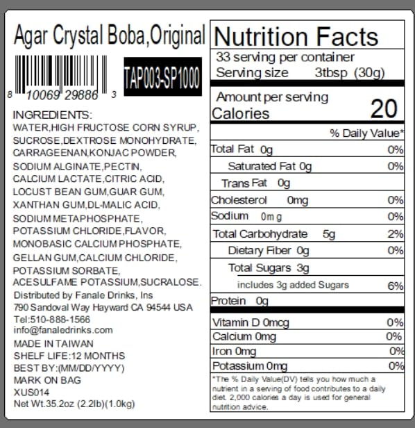 Fanale Crystal Agar Boba Jelly Ball, Ready to Serve, Soft Chew Texture, Instant Boba Pearls for Bubble Tea, Frozen Yogurt, Shaved Ice & Dessertโs Topping