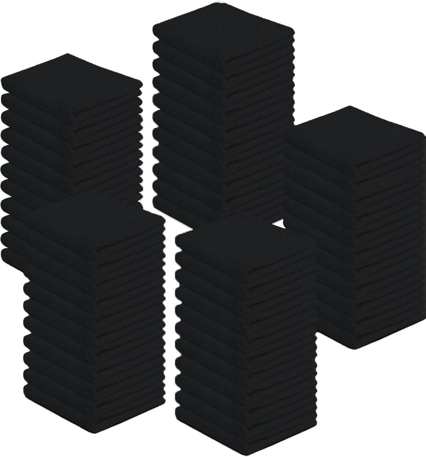 ZUPERIA 100% Cotton Terry Towels Cleaning Cloths, Pack of 50 (12" x 12") Multipurpose, Highly Absorbent, Reusable Cotton Rags, Bar Towels & Cleaning Rags for Everyday Usage (Black)