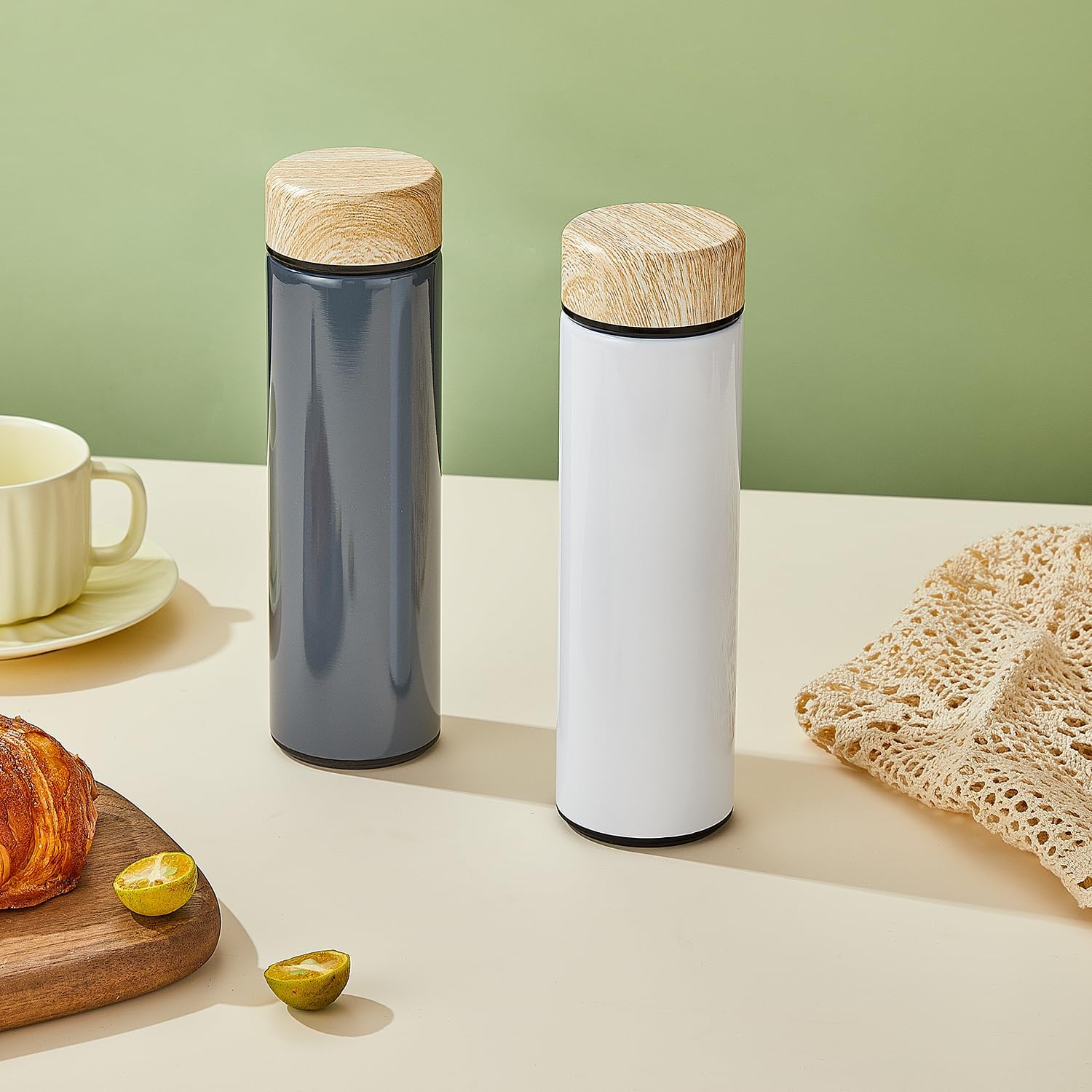 15oz Water Bottle Stainless Steel Thermos Flask - Insulated Vacuum, Leak Proof, Keeps Drinks Hot/Cold - Ideal for Coffee, Tea, Water - Grey