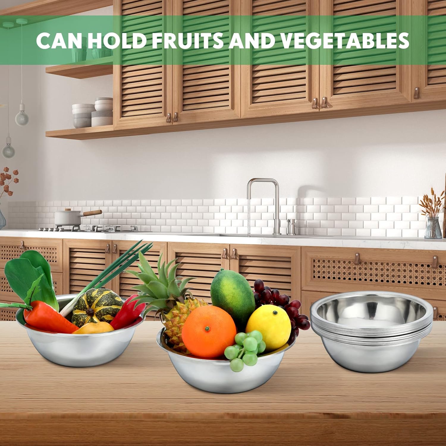 - Stainless Steel Mixing Bowl Set: what you will receive are 12 pieces of stainless steel bowls for mixing in silver color, metal food prep bowls are about 9.45 x 3.15 inches/ 24 x 8 cm which can be applied as both baking mixing bowls and serving bowls adequate quantity can well meet your daily use, replacement and sharing demands