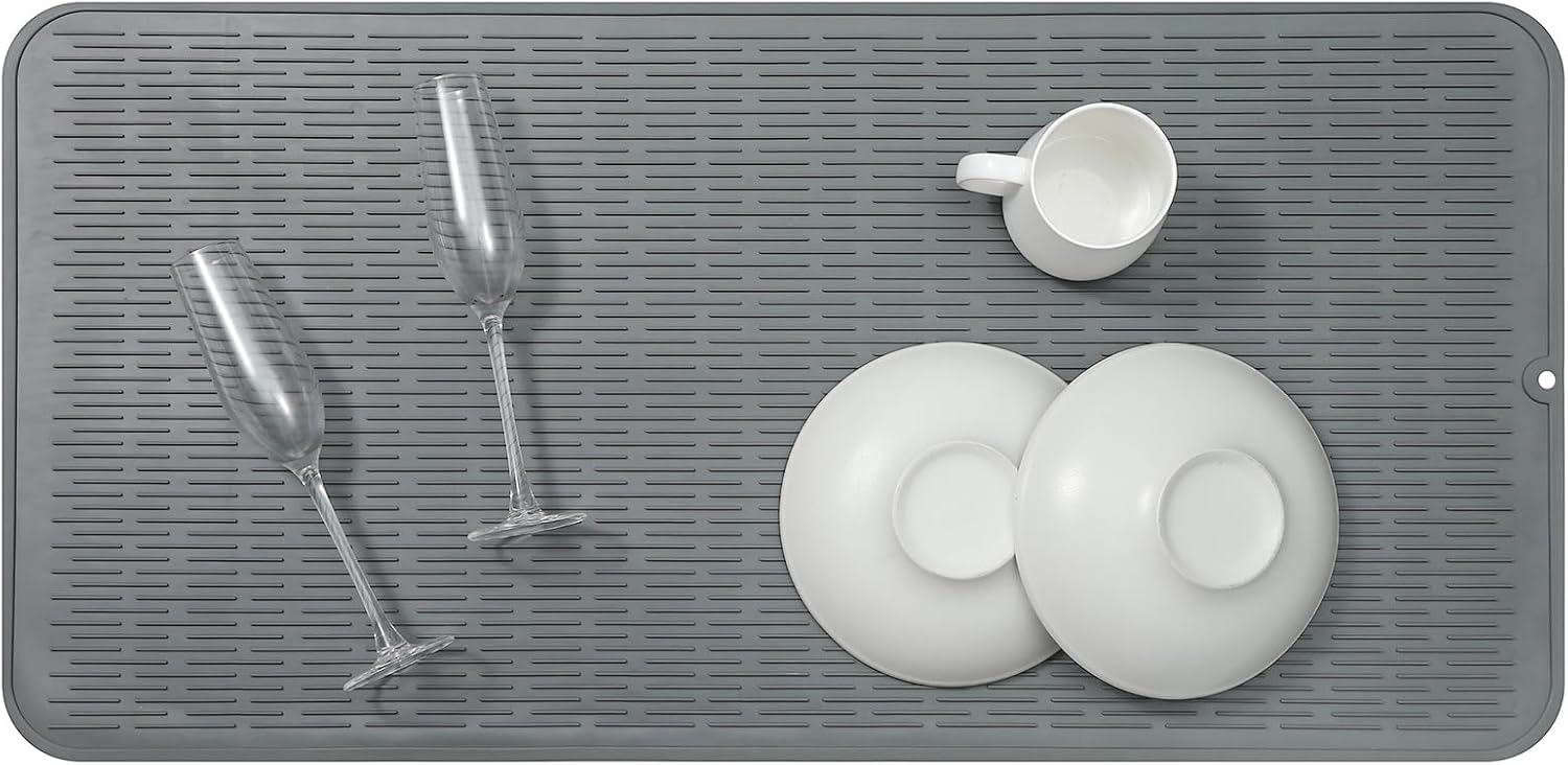 Silicone Dish Drying Mat for Multiple Usage,Easy clean,Eco-friendly,Heat-resistant Silicone Mat for Kitchen Counter or Sink,Refrigerator or Drawer Liner Grey 5XL 36inches x 18inches