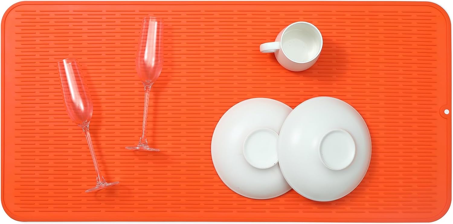 Silicone Dish Drying Mat for Multiple Usage,Easy clean,Eco-friendly,Heat-resistant Silicone Mat for Kitchen Counter or Sink,Refrigerator or Drawer Liner Orange 5XL 36inches x 18inches