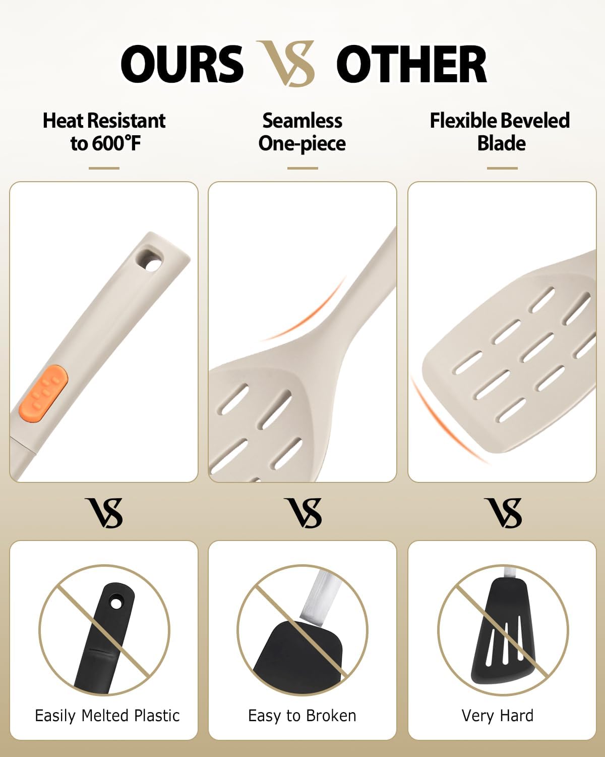 - Heat Resistant: Our silicone spatula turner and spoon set is made of food grade silicone . BPA free and will not rust. Even at 600℉, you don't have to worry about melting or deformation.