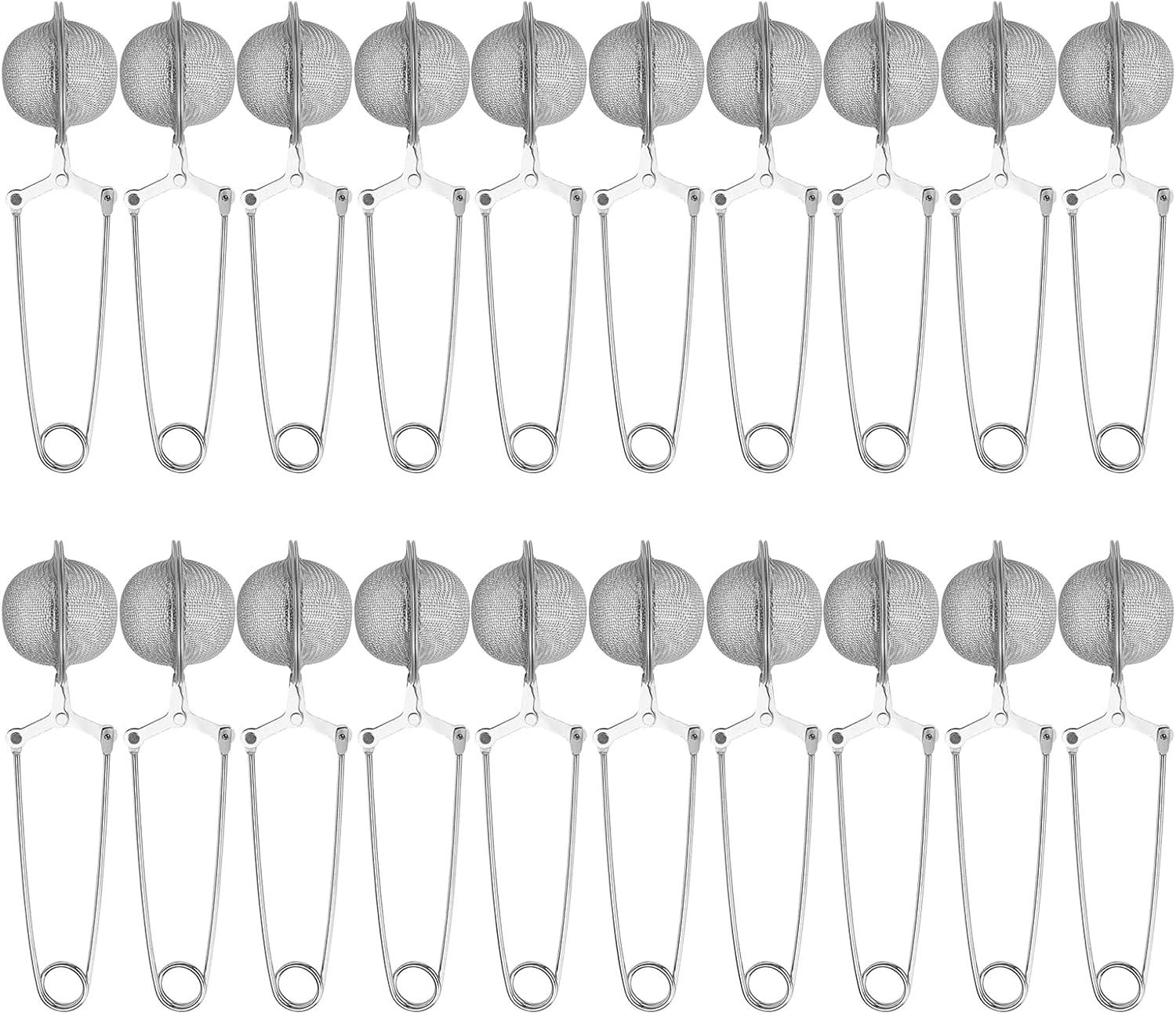 Snap Ball Tea Strainer, Voittozege 20 Pcs Premium Stainless Steel Tea Infuser with Handle Tea Infuser Filter with Tong Pincer Steeper Reusable for Loose Leaf Tea, Spices, Seasonings
