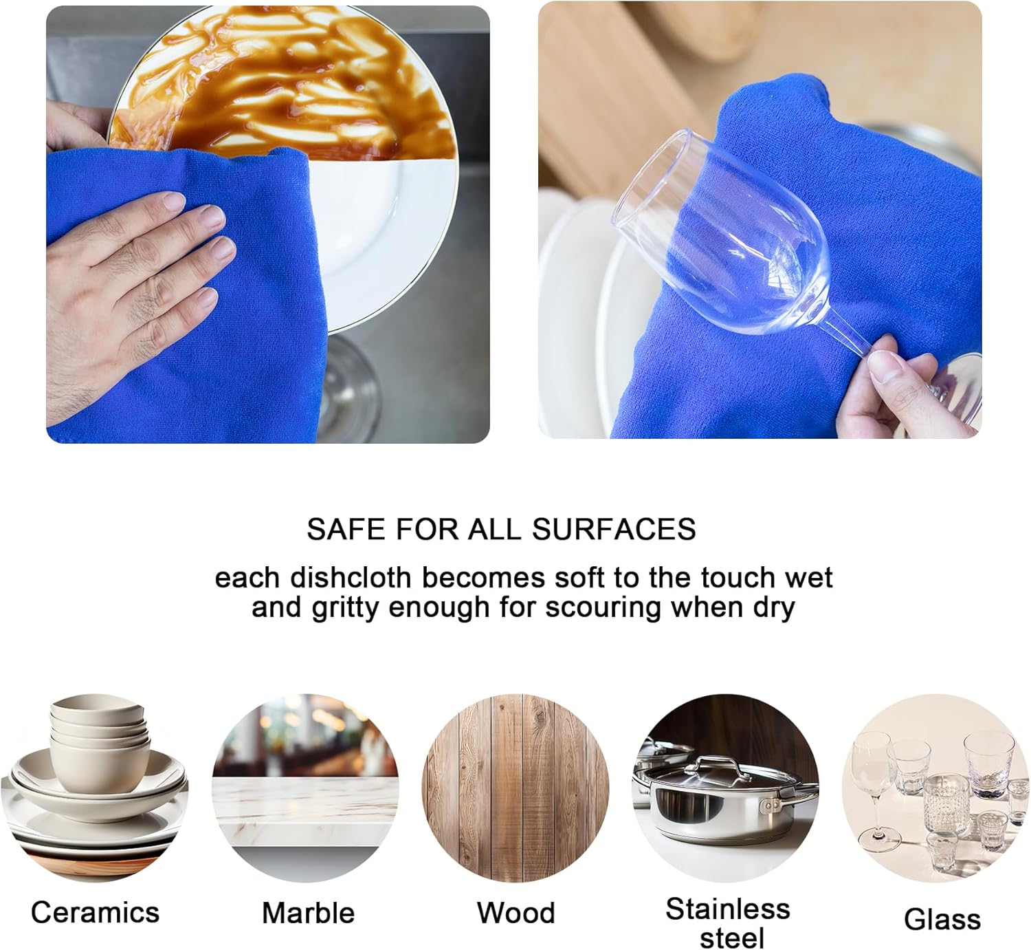 - HIGH QUALITY MATERIAL - Our dish rags are made of high quality non-abrasive and extra soft coral velvet thickening material, which is not easy to lint and fade, soft and not hurting hands, natural and without any chemicals. These dish cloths are not only suitable for kitchen cleaning, but also suitable for cleaning home furniture, car, window, electric appliance etc. Itās so easy to remove dust, dirt, stain, grease, fingerprints.