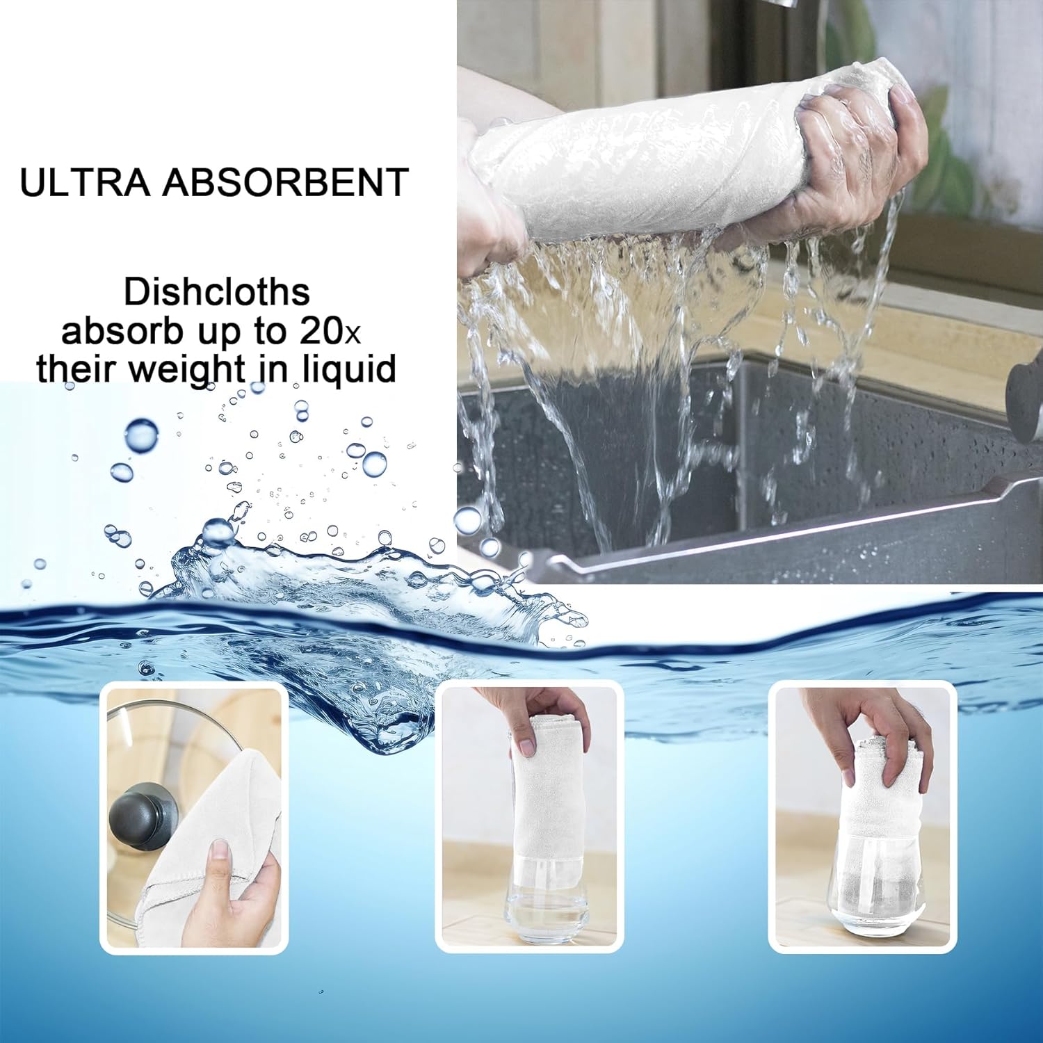 - COUNTLESS USES - Due to being highly absorbent, these microfiber dish towels are great for dust cloths, drying hands, wiping stains, cleaning windows, as well as cheese strainers, salad spinners, a wide variety of household chores. As good as having a magic wand in your hands! Get the job done quickly in a right way with our dish cloths!