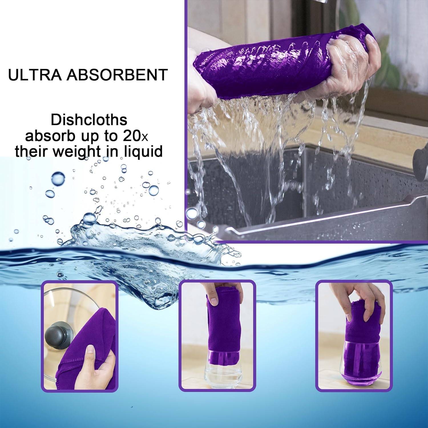 kimteny 13x28 Inches Kitchen Cloth Dish Towels, 400 GSM Premium Dishcloths, Super Absorbent Coral Velvet Microfiber Cleaning Cloths, Fast Drying Rags for Washing Dishes (6 Pack, Purple)