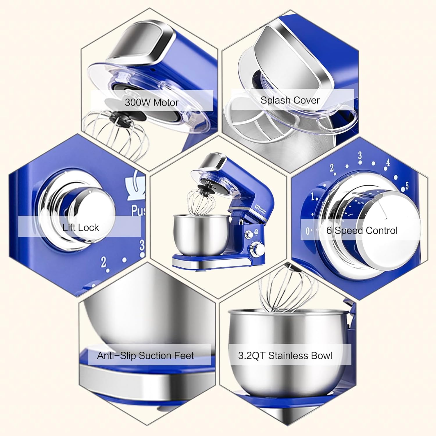- 3.2Qt Capacity and Tilt Head Design - Our little kitchen mixer equipped with 3.2Qt stainless steel bowl,suitable for new baker,1-2 members family or couples,easy to operate and clean up.Tilt-head design mixer allows access to install or uninstall bowl and accessories easily.And transparent anti-splash lid could prevent the ingredient making a mess.