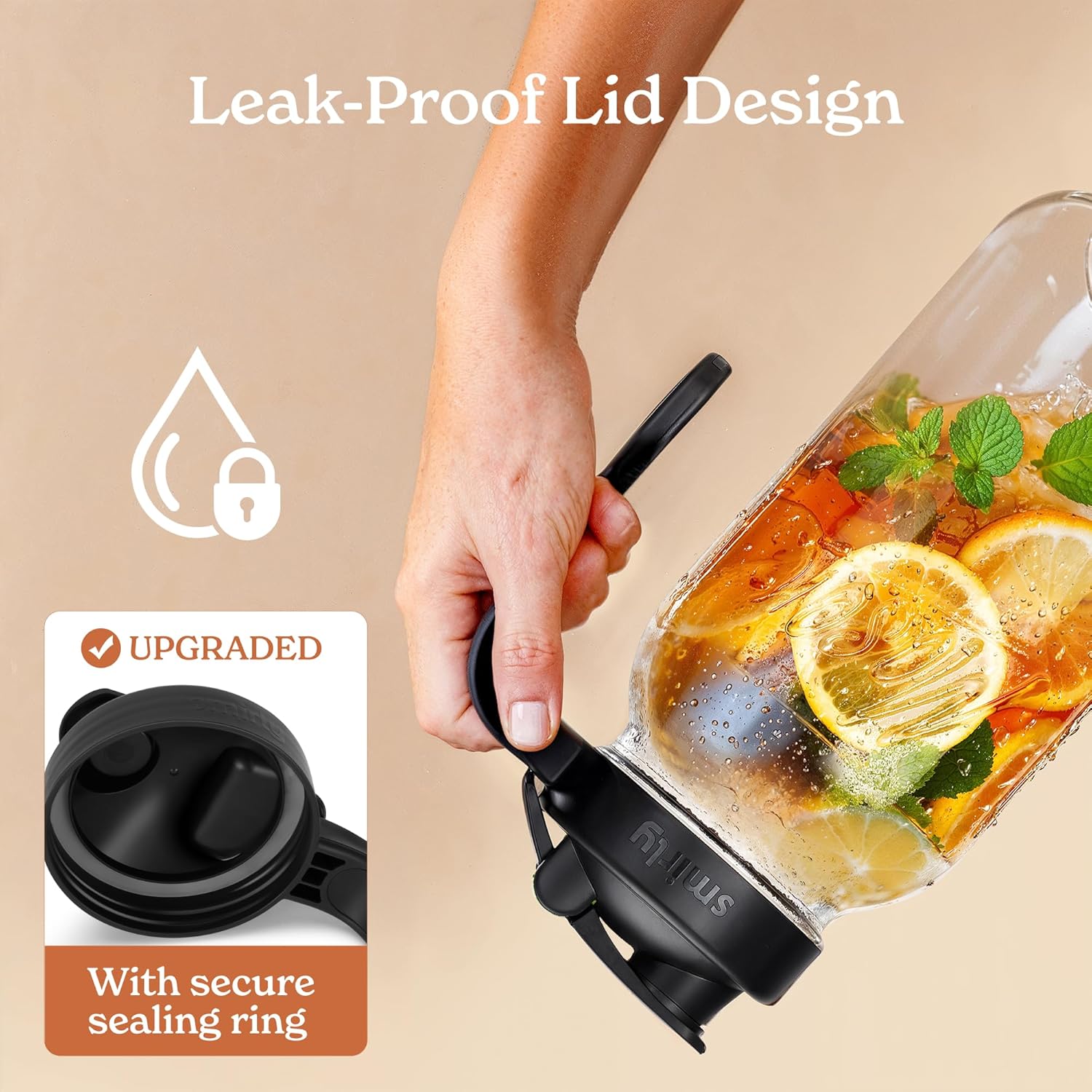 - Functional design: The non-slip handle on this 2 quart pitcher with lid ensures steady pouring.Hanging ring on this large mason jars adds convenience for easy carrying and storage
