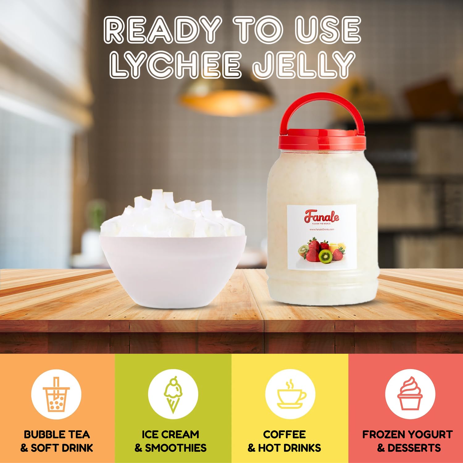 Fanale Coconut Jelly Topping nata de coco for Bubble Tea 8.3 lb | Lychee Jelly | for Boba Tea, Smoothies, Slushes, Desserts | 8.3 pound (Pack of 4) | JEL005-CS