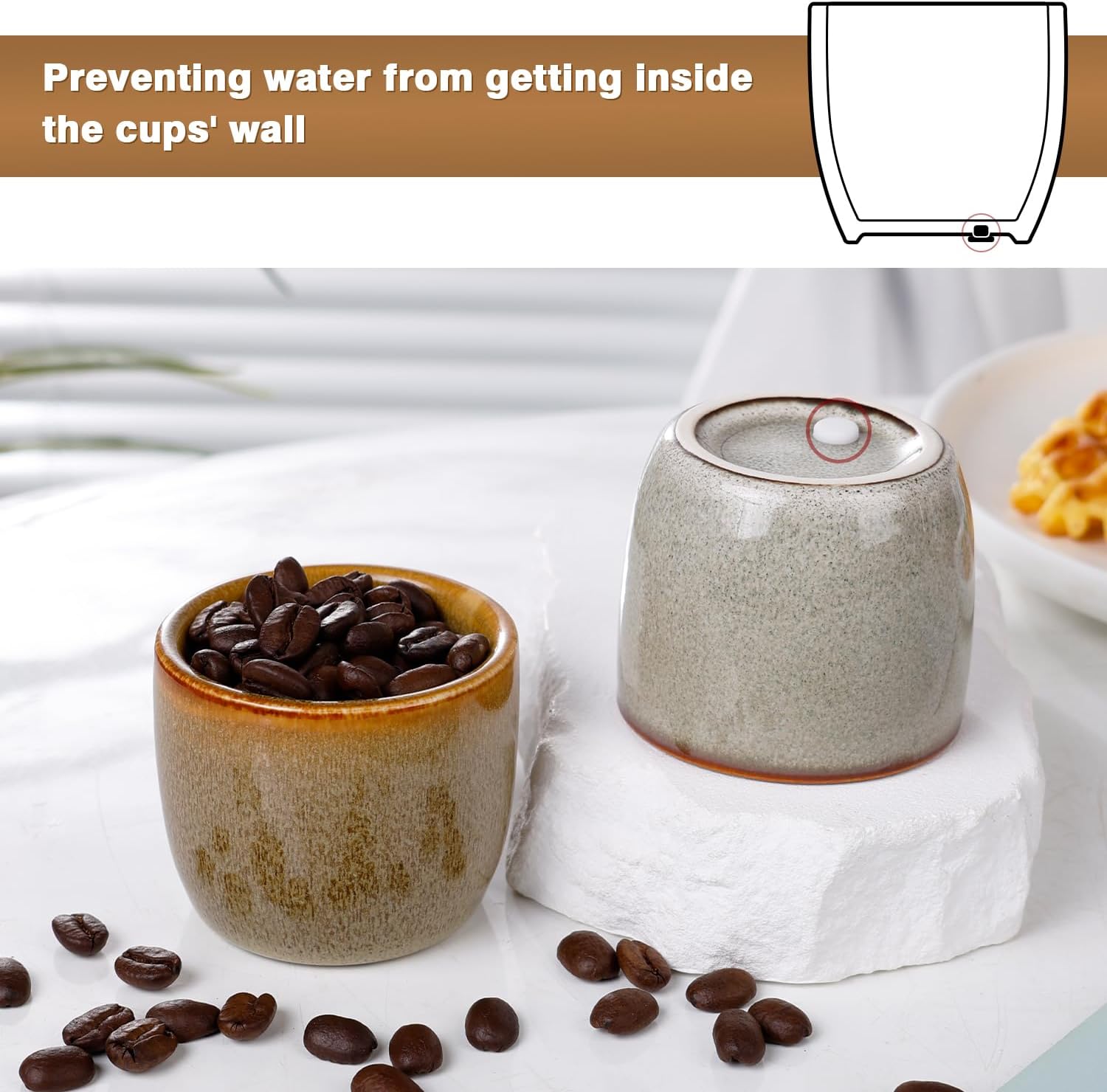 Ceramic Espresso Cups Set of 4, Double Walled 2oz Espresso Coffee Mugs for Eespresso Cups, Special glazed Demitasse Cups Expresso Coffee Cup for Espresso Machine