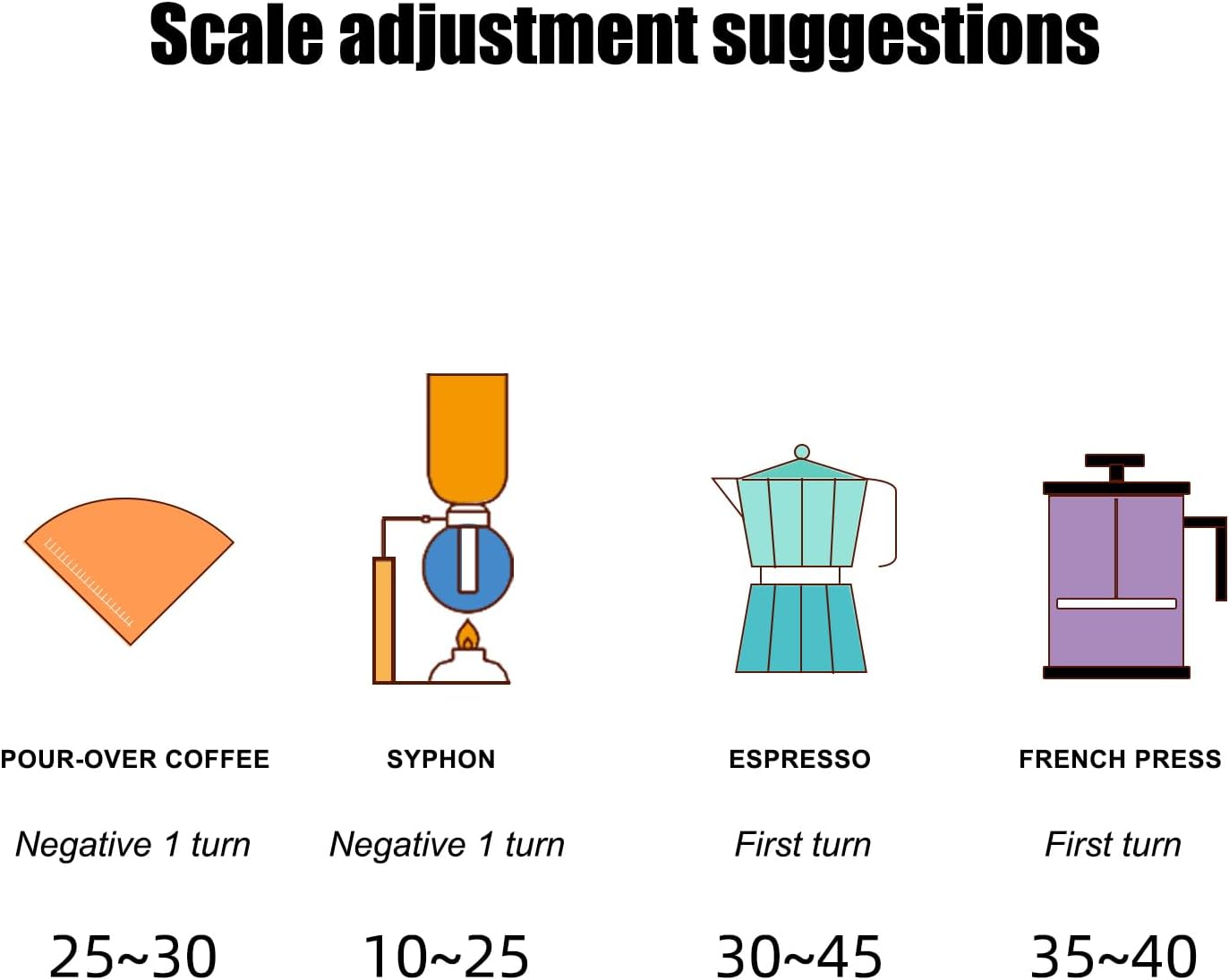 - EXTERNAL ADJUSTMENT DESIGN: Adjust this one without having the handle installed coffe fine and coarse. avoid hand contact with the food.