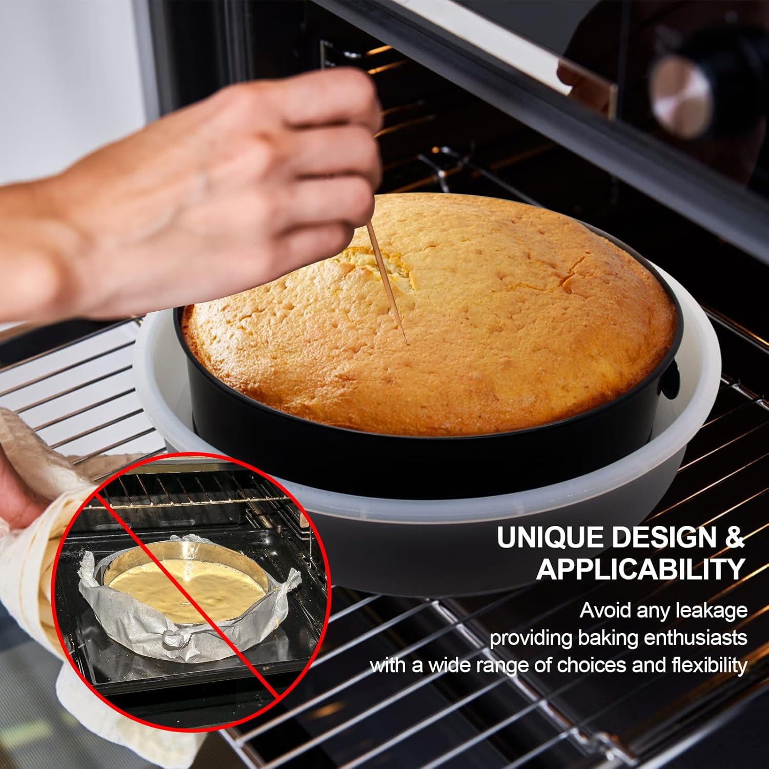 - Easy to use, perfect baking: just three simple steps and you're ready to start baking. First, place your cake mold in a silicone mold; second, fill it with your favorite cheese filling; finally, place the whole thing into a baking pan, add hot water and put it in the oven. This way, you're sure to bake an even, leak-free cheesecake every time.