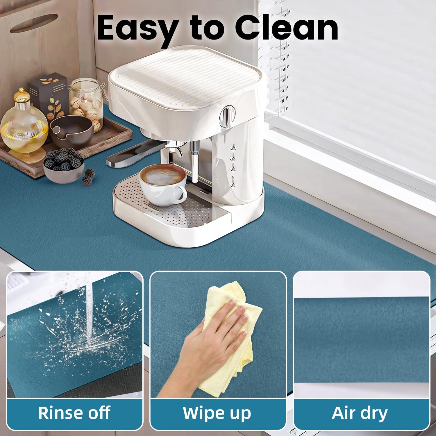 - Super Absorbent and Quick Dry: The coffee bar mats for countertop with absorbent diatomite in middle layer, which quickly absorb liquids and catch splashes. Without worrying about soiling your countertop while making coffee by using under coffee maker mat