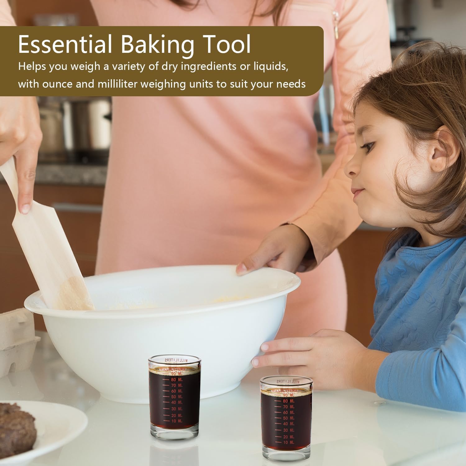 - 【Easy to Measure】 The glass measuring cup adopts a classic round design, with two different measurement methods for you to choose. The maximum scale is 3 ounces (90ml). It is easy to measure various liquids or dry ingredients. It is more convenient than using a measuring spoon. It is ideal for kitchen and baking. A great tool for training and daily use.