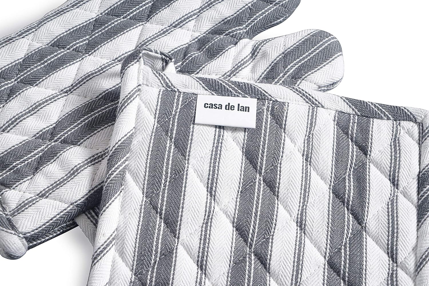 - Oven Mitt & Potholder Set - Durable Heat Resistant Gloves - Thick Mittens For Kitchen - Suitable For Cooking, Baking, Grilling – Bbq - 1 Oven Mitts & 1 Potholders – Dark Grey Stripes - Casa De Lan
