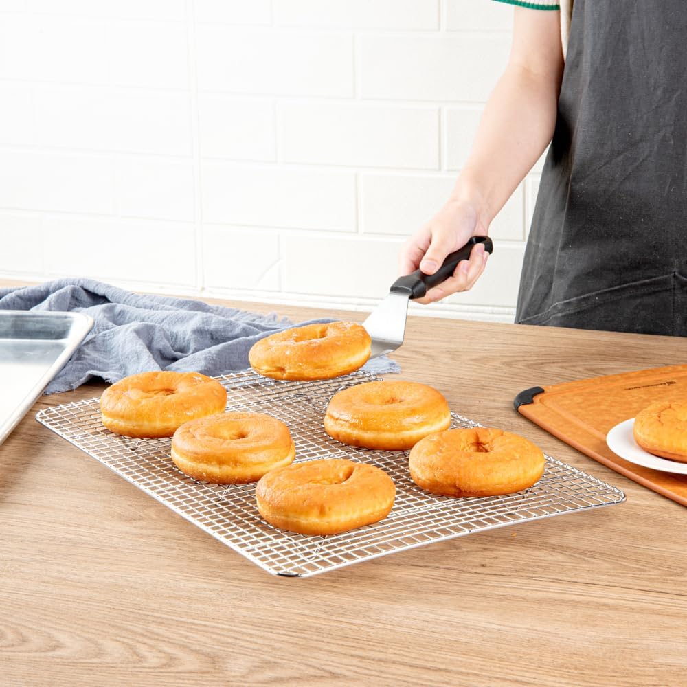 - EVENLY COOLS DOWN TREATS: The mesh wires of this metal cooling rack provide steady air circulation to evenly cool down treats. Effortlessly bake perfect cookies, cakes, and sweets!