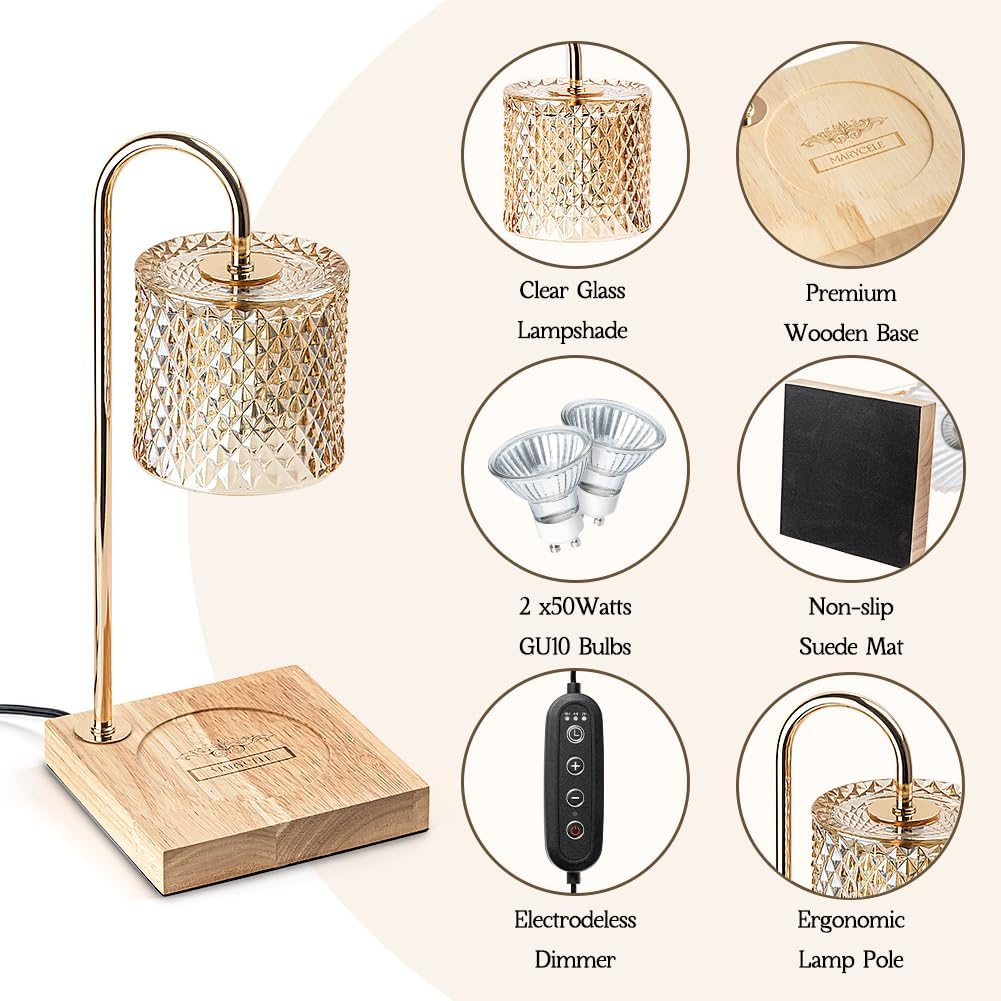 Lamp Candle Warmer with Timer, House Warming Gifts New Home, Candle Wax Warmer, Aesthetic Room Home Bedroom Decor, Amber Lozenge Diamond