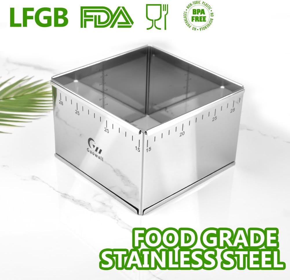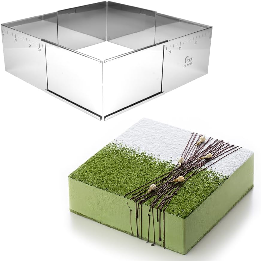 Guowall Adjustable Cake Ring Extensible Rectangle Ring Mold Detachable Stainless Steel Square Shaped Cake Cutter, Nonstick DIY Baking - 5.9 x 5.9 in (15 x 15 cm)