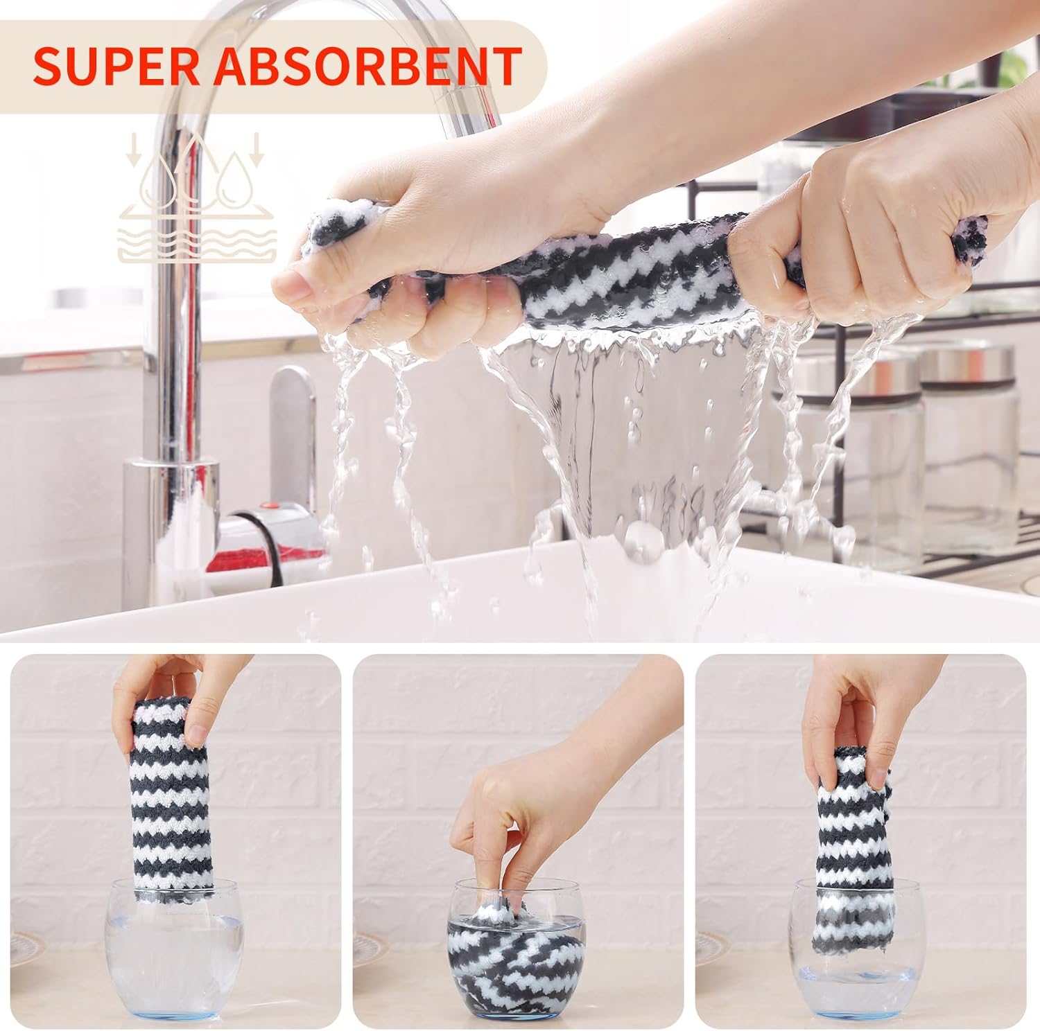 - Value Pack: The collection includes 12 pack Microfiber cleaning cloths, The wavy pattern design and available in a variety of colors to coordinate with any kitchen dƩcor. Measuring 10 x 10 and 10 x 20 inches, it is suitable for any home kitchen needs.