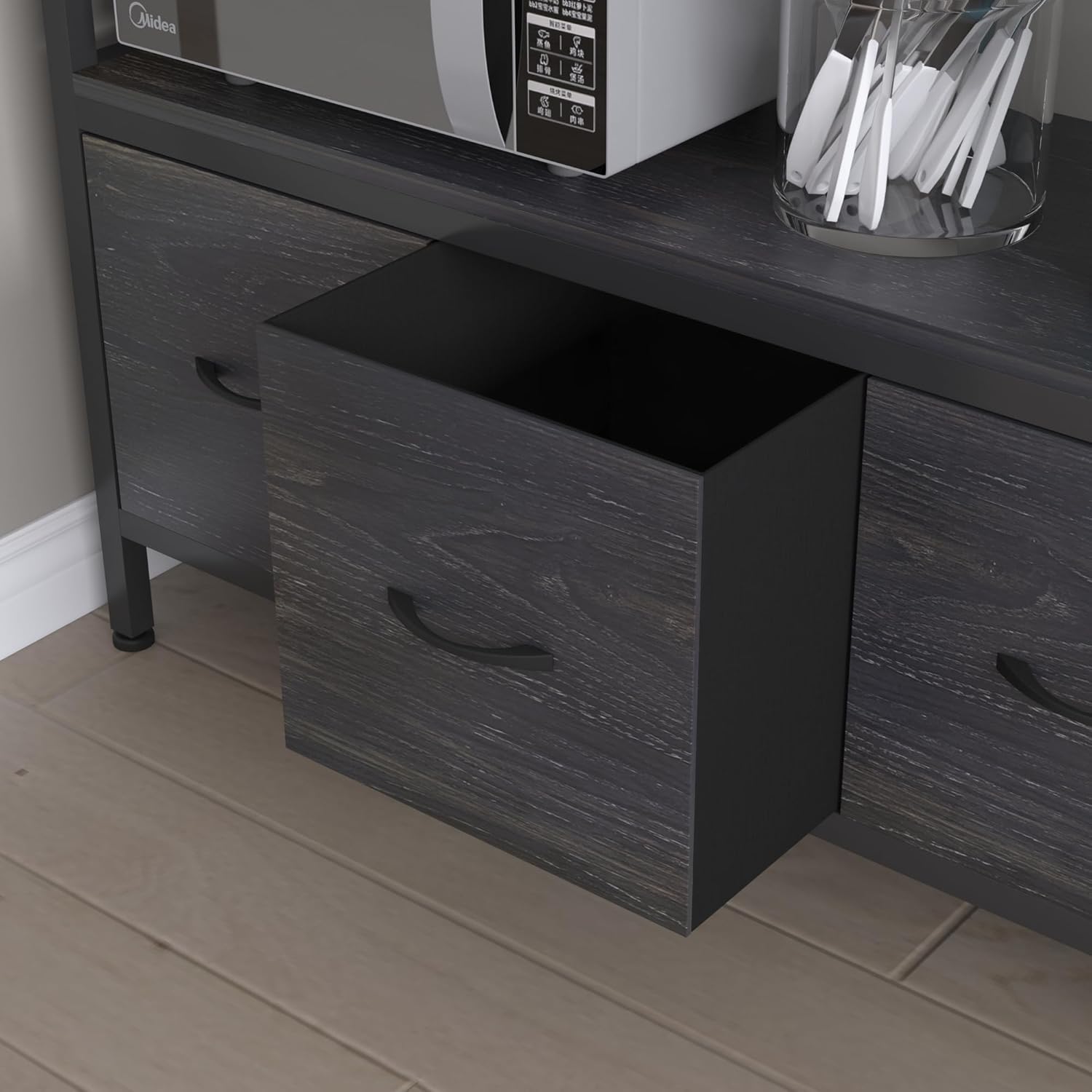 - ăLarge Storage Capacityă Size:13.39"D*39.37"W*62.2"H.the bakers rack has 3 basketsďźYou can also remove the basket for an extra layer of storage spaceďź and four open shelves with different size offer ample storage space to store and organize your kitchenware, oven, bread maker, juicer while three baskets can store fruits and vegetables or some kitchen essentials.