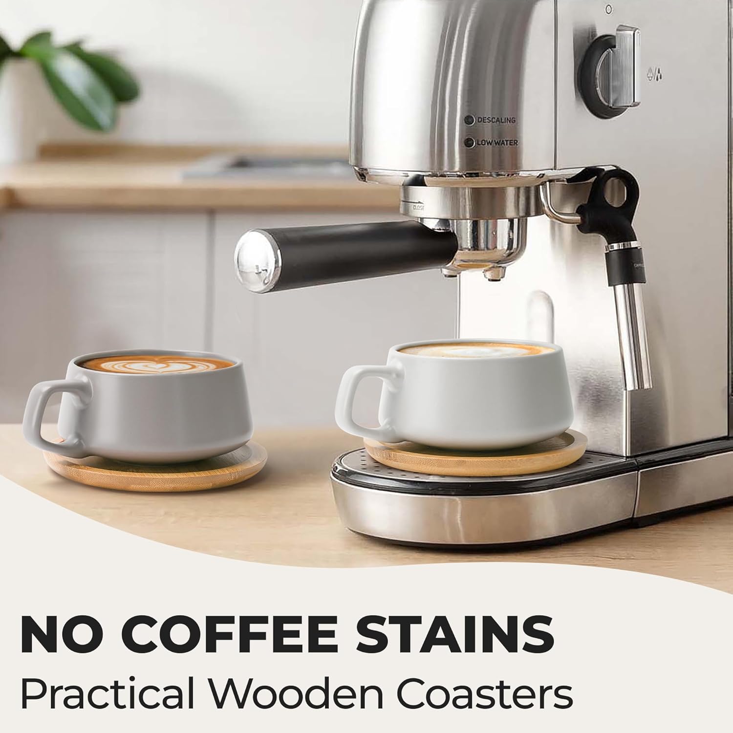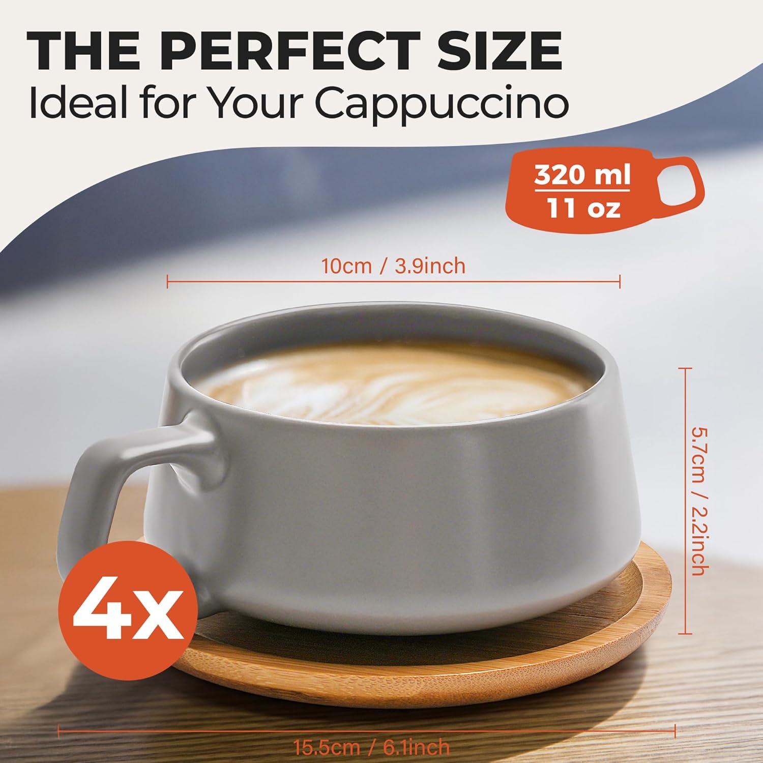 MIAMIO ā 11 Oz., Set of 4 Ceramic Tea Cup and Saucer Bamboo/Tea Mug - Wide Cappuccino Cup, Coffee Cups Ceramic Mug for Cappuccino, Latte, Espresso & Americano - Luxe Collection (Classic Pastel)