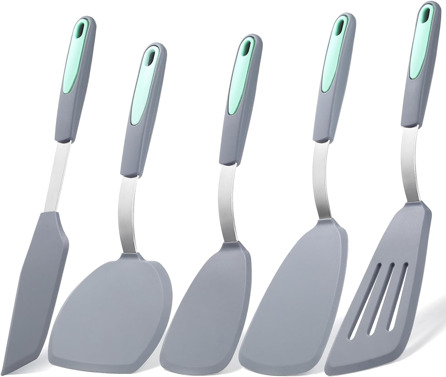 To encounter 5 Pieces Silicone Spatula Set, Non-Stick Silicone Turner Spatulas, Heat Resistance Cooking Utensils, Flip Turner for Fish, Egg, Pancake, Light Grey
