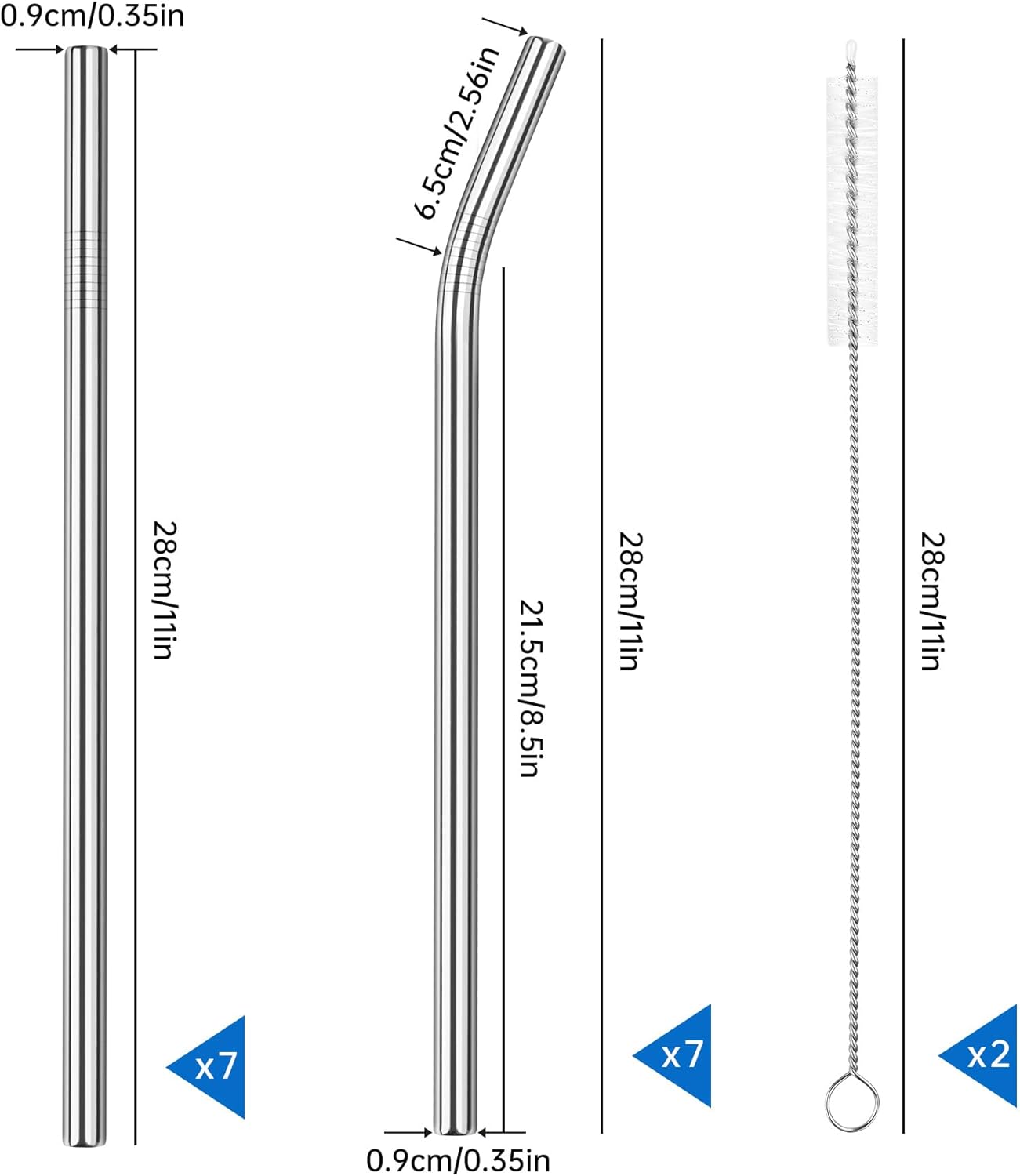 - 🍹 Comprehensive Set: This set includes 7 straight and 7 bent stainless steel straws, each measuring 11 inches in length and 0.35 inches in diameter. It also comes with 2 extra-long cleaning brushes, making it a practical addition to any kitchen.
