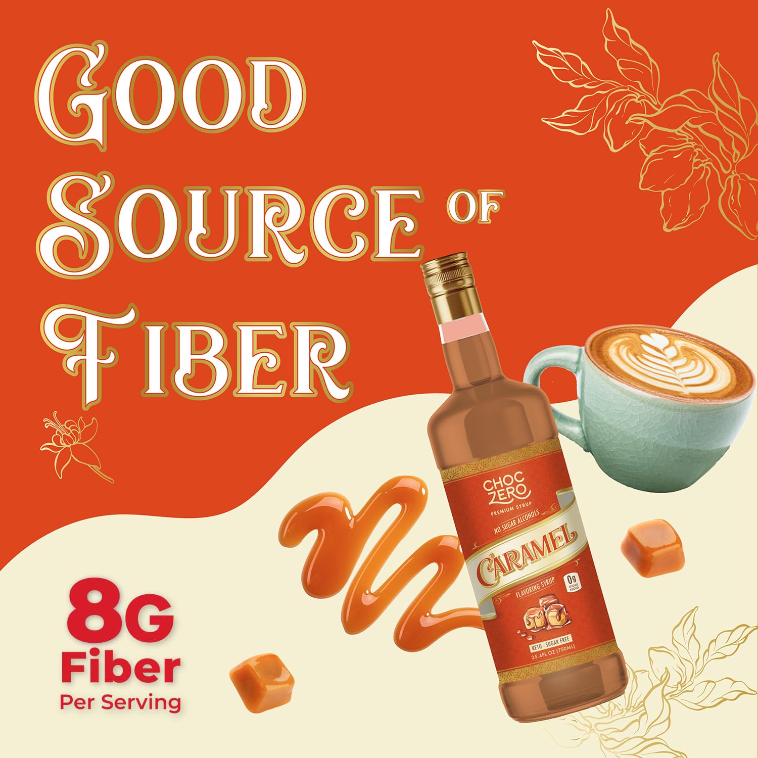ChocZero Sugar Free Caramel Syrup for Coffee - Keto Flavoring Syrups - Low Calorie Simple Syrup for Flavored Drinks – 25.4 Fluid Ounces