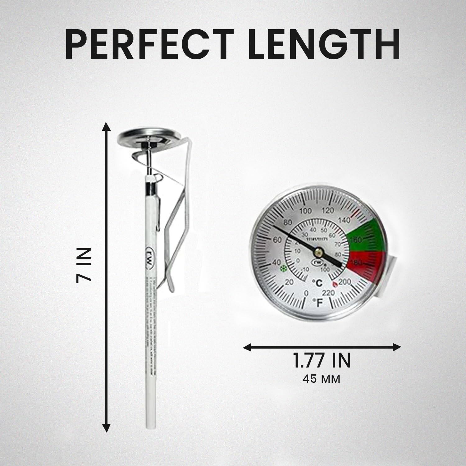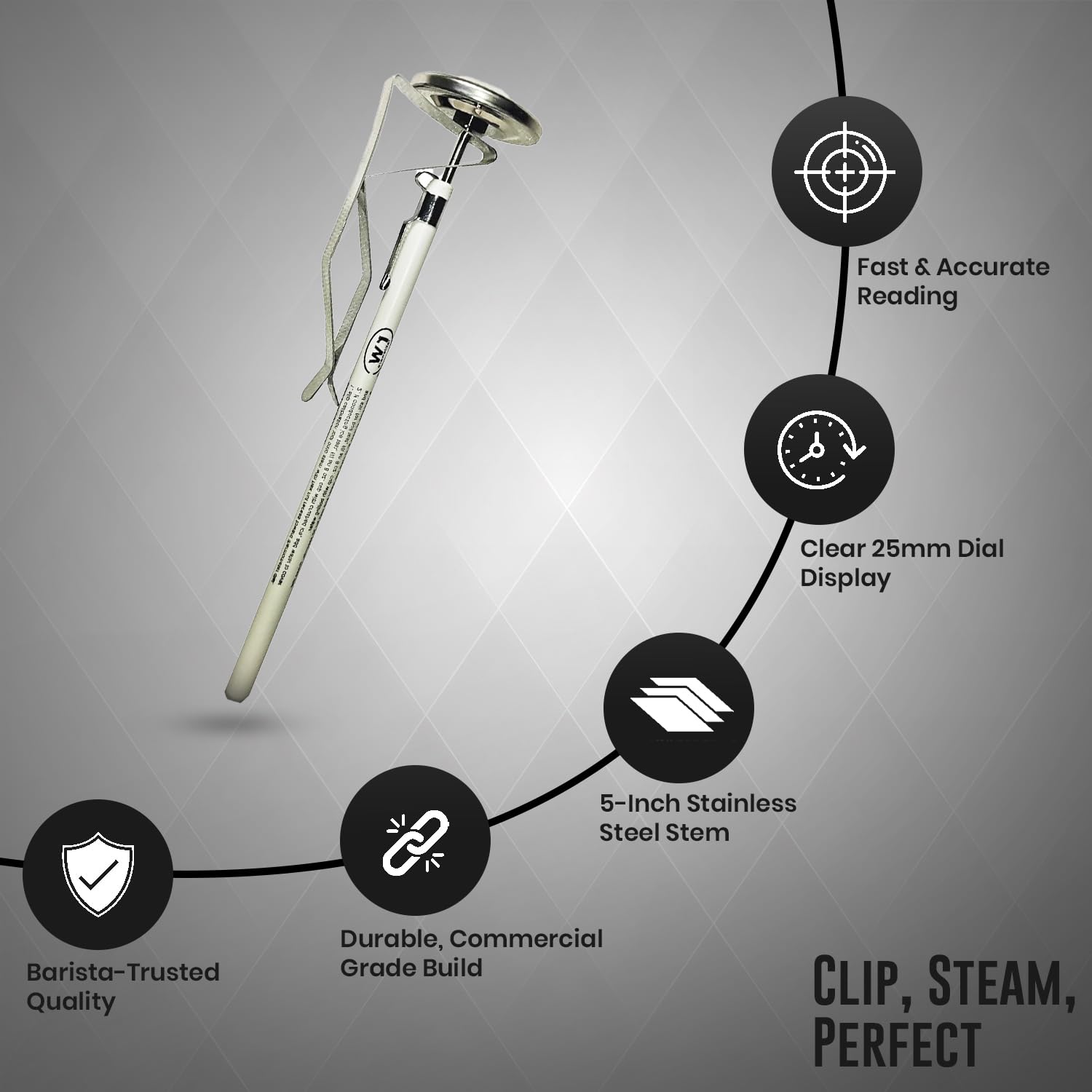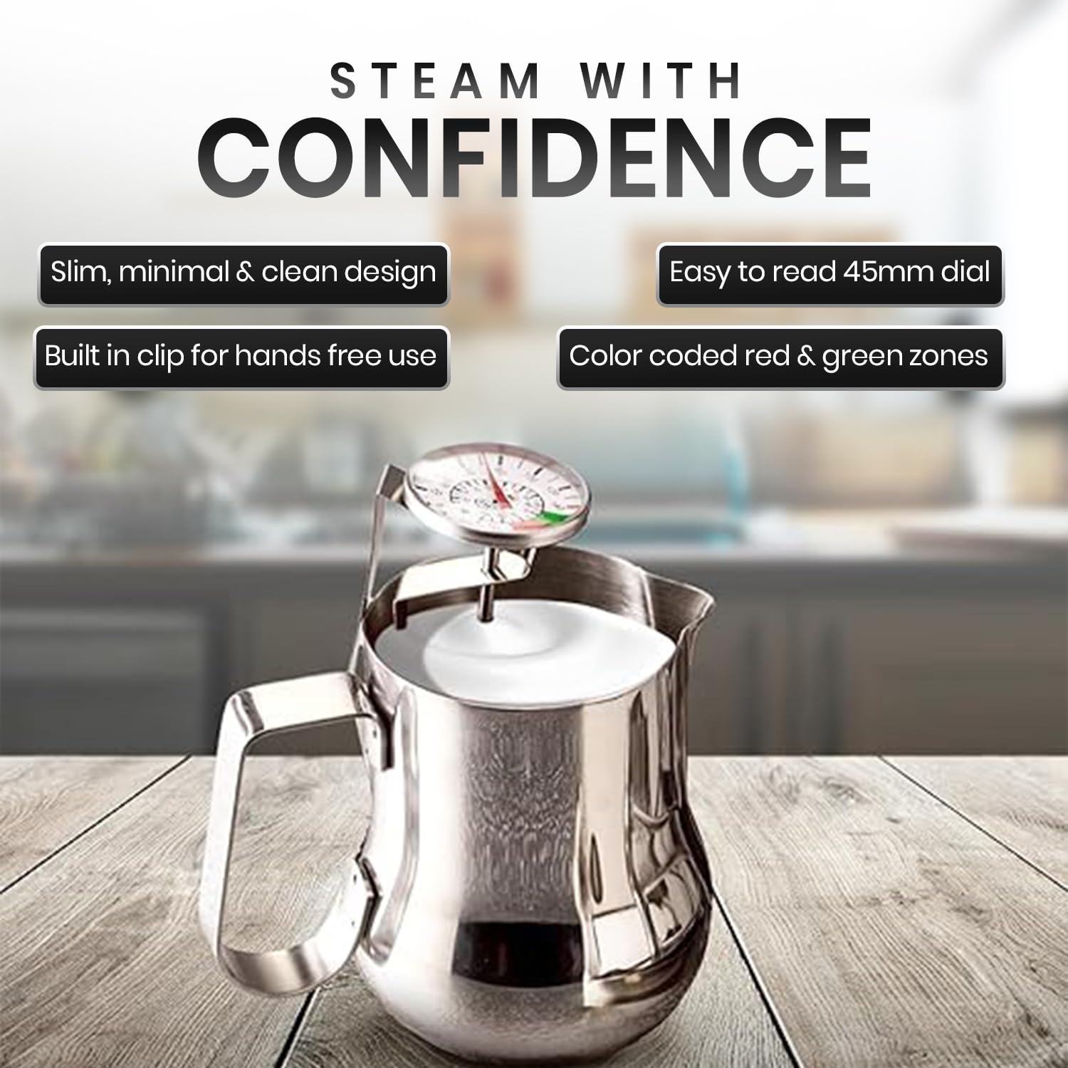 Rattleware 7β Easy Steam Thermometer for Home, Cafe, Restaurants, Residential, or Commercial Use - Milk Frothing and Barista Thermometer - Durable Fast Reading (45mm Dial)