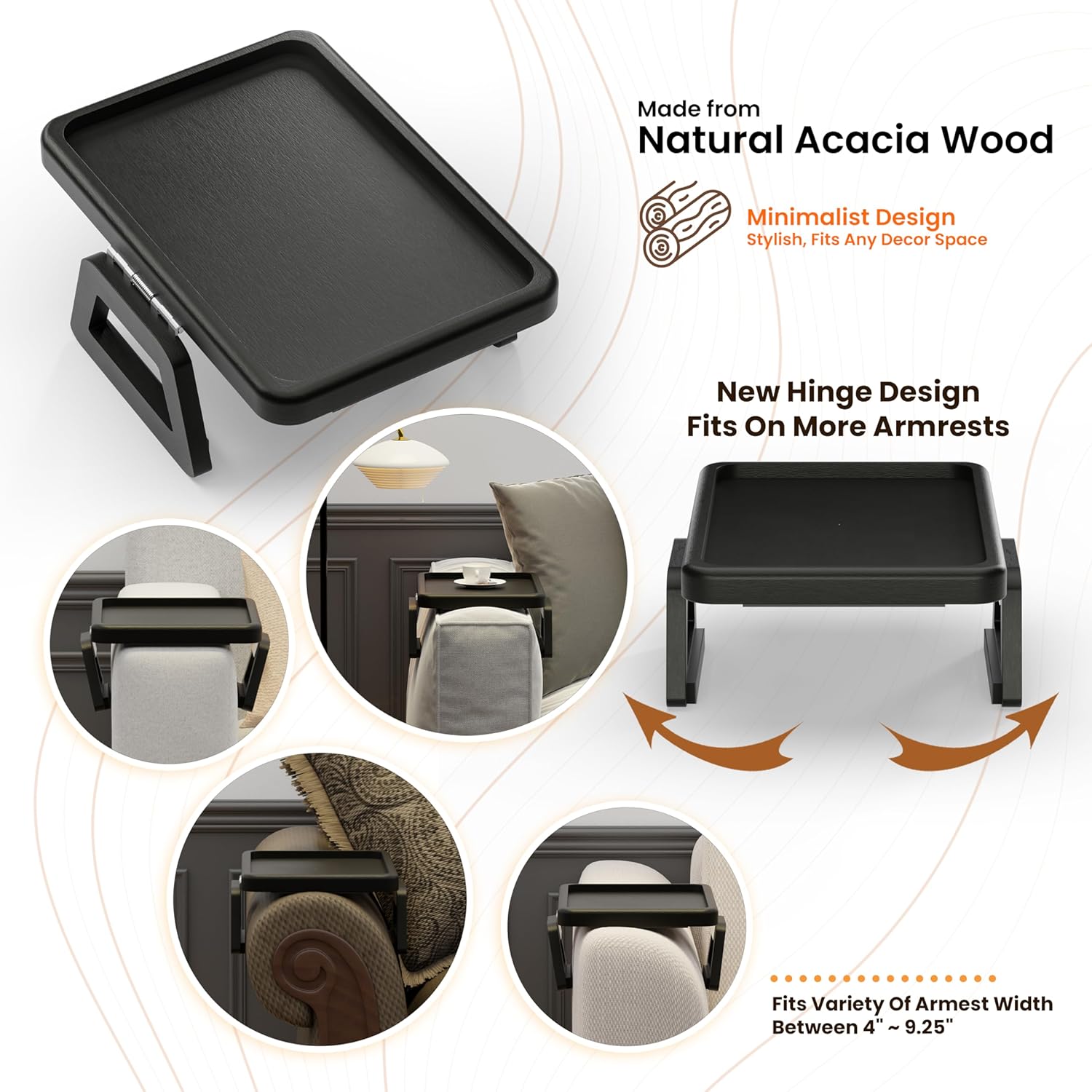 - Enhanced Stability: Designed with sturdy spring-loaded hinges and wide-leg support, this foldable tray grips tightly on your couch arm, ensuring a convenient surface for snacks, drink, and devices