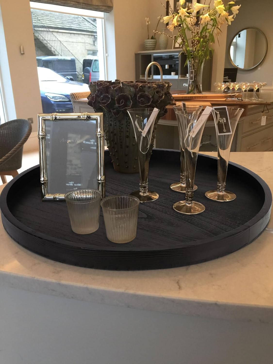 Round Ottoman Table Tray Round-24 - Rustic Wooden Serving Tray for Farmhouse Decorative Oversized Coffee Table Trays Living Room Kitchen Counter Breakfast Black