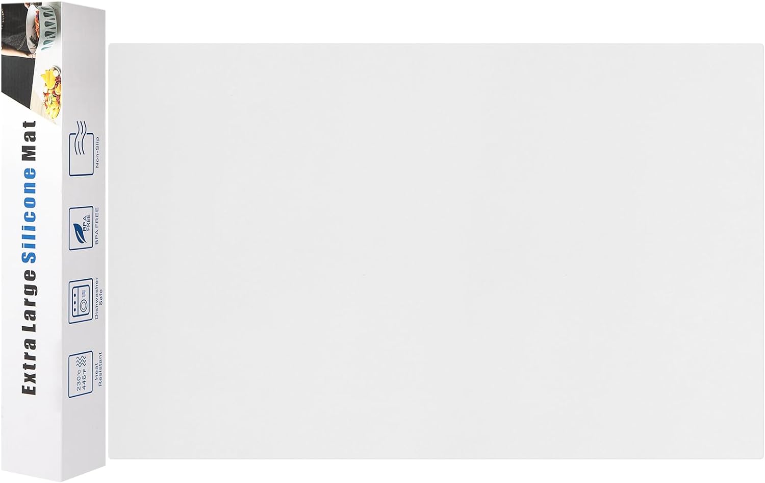 Silicone Mats for Kitchen Counter Thicker Extra Large Heat Resistant Mats Countertop Protector Liners for Bottom of Oven Air Fryer Coffee Maker, 24" x 16" x 2 mm, Translucent