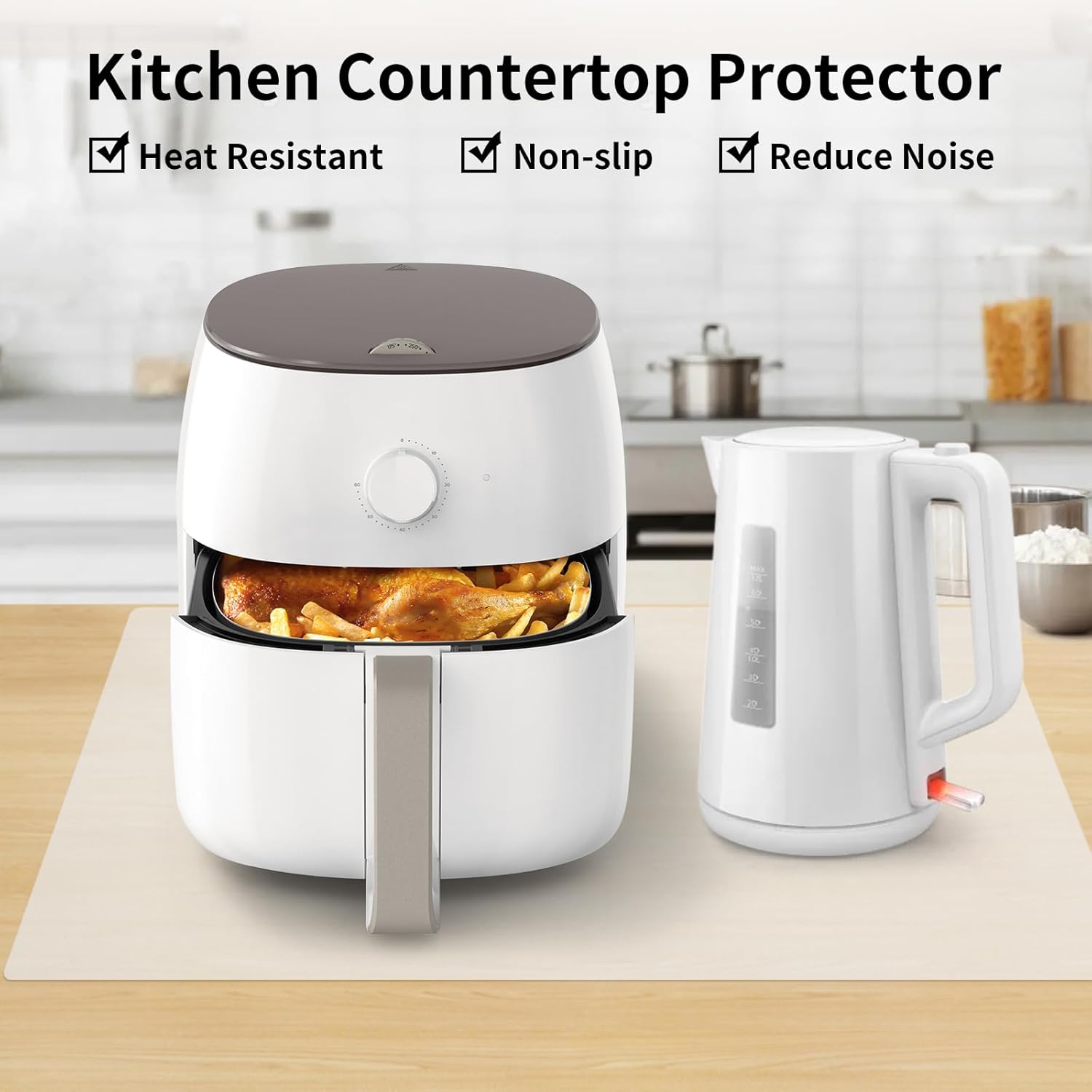 - Extra large silicone mat: Size of 24” x 16”, it can be placed under the air fryer, microwave, toaster oven, induction stove, coffee maker to protect the kitchen countertops and other surfaces against spills, scratches, grease, heat, etc.And it also reduces the noise of the appliance when running.