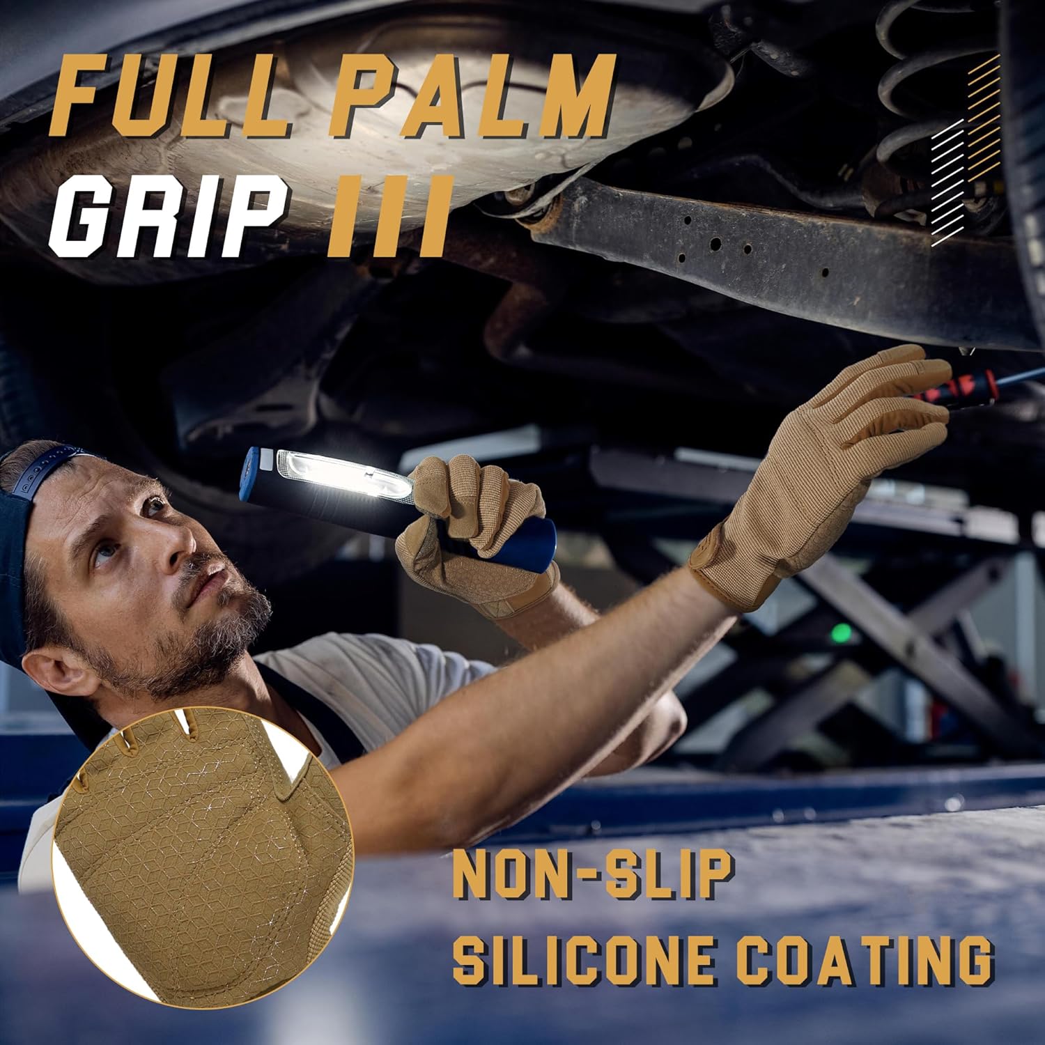- High Dexterity Work Gloves with Upgraded Grip: Synthetic leather palm provides the perfect blend of dexterity and durability. The silicon coating at the palm & fingertips provides a secure grip, No more tools slide out of your hands!